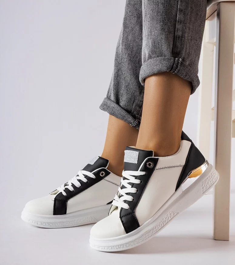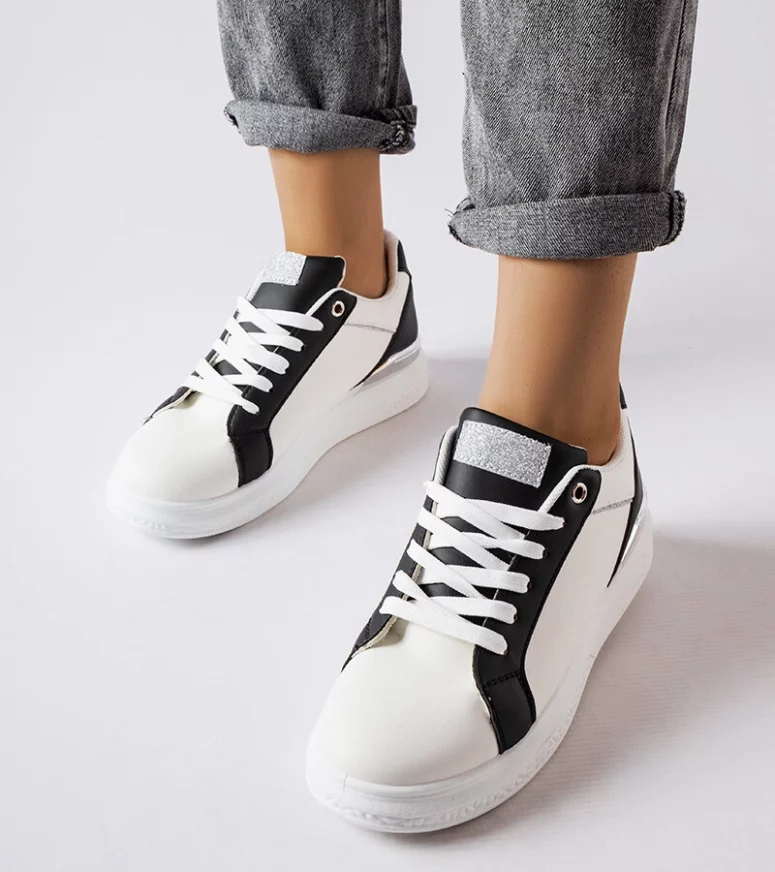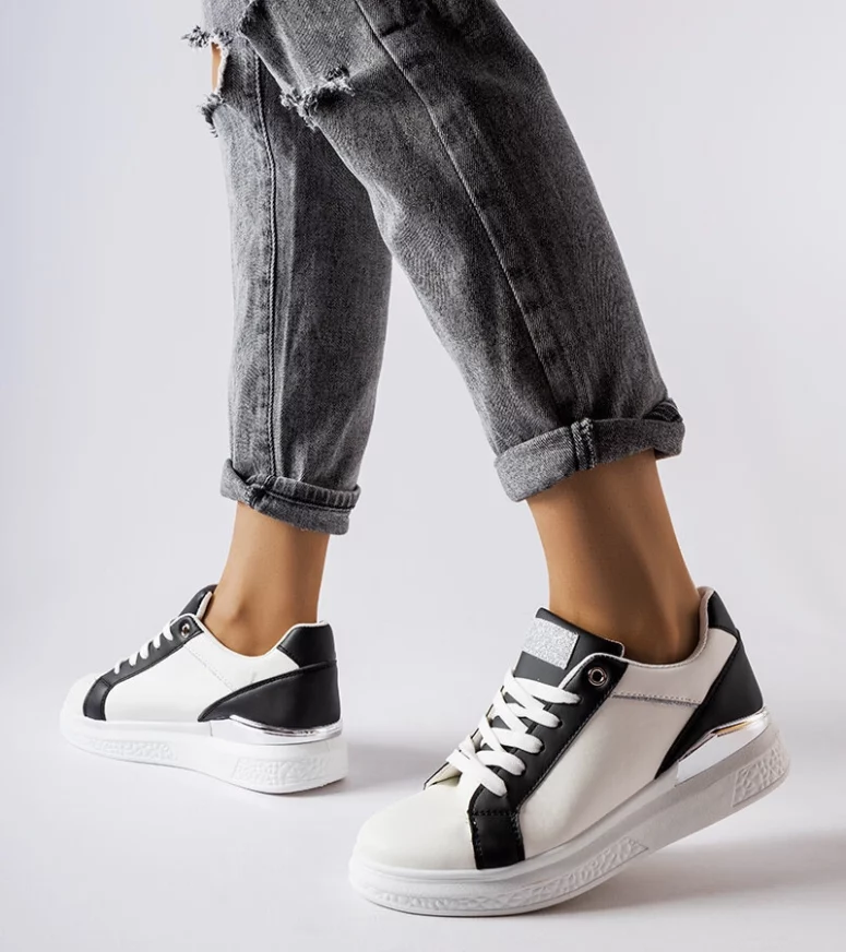 Biało-czarne buty ze srebrnym akcentem Palais