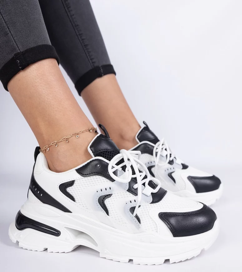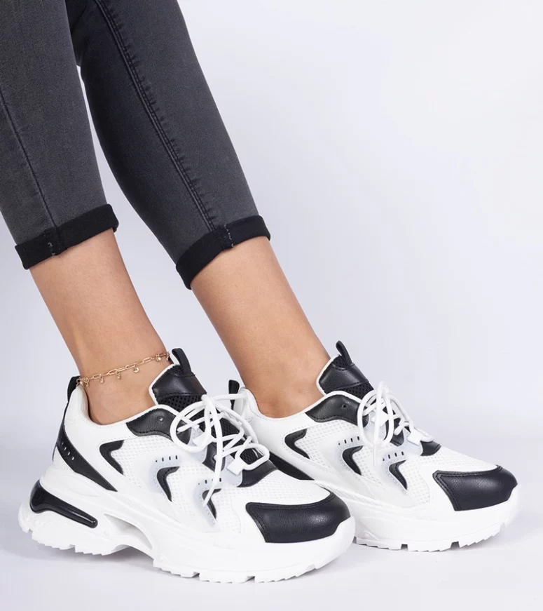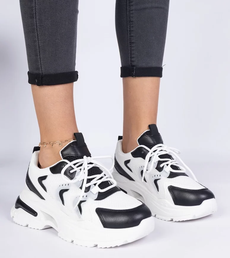 Biało-czarne damskie sneakersy sportowe Lamula – Gemre
