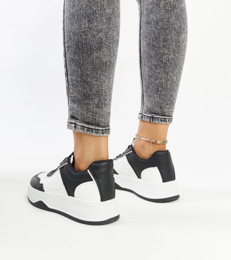 Biało-czarne sneakersy Rumai to idealny wybór dla młodego pokolenia, które ceni sobie styl i wygodę. Ten model charakteryzuje się okrągłym nosem oraz grubszą podeszwą na średnim obcasie, co dodaje mu modnego wyglądu. Sneakersy są sznurowane, co pozwala na idealne dopasowanie do stopy. Wykonane z wysokiej jakości gumy, zapewniają trwałość i komfort noszenia. Dla każdej fasionistki, która chce podkreślić swój unikatowy styl!