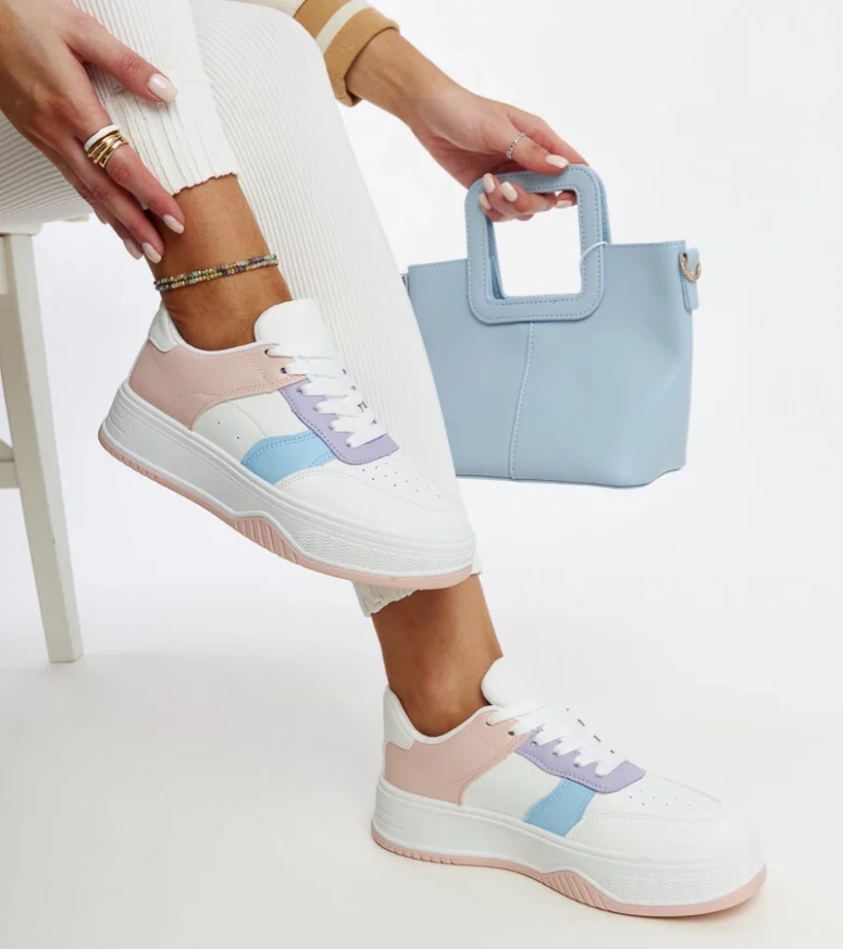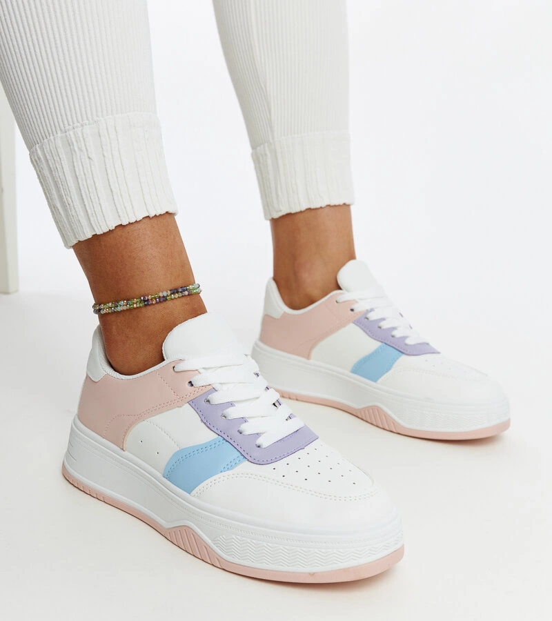 Biało-różowe sneakersy na grubszej podeszwie Rafida