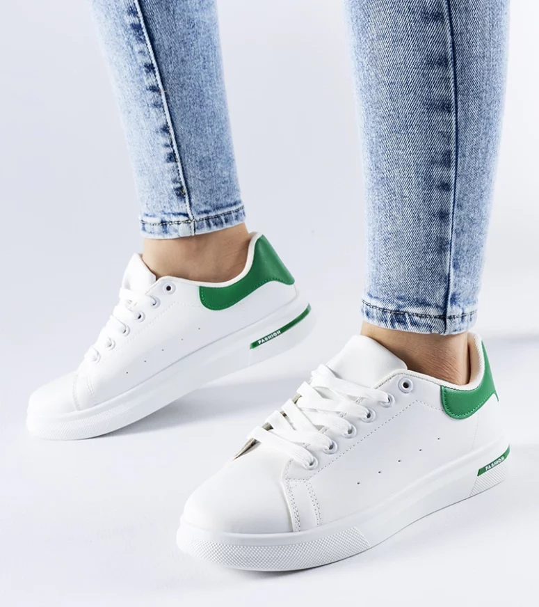 Biało-zielone sneakersy Leland to idealny wybór na gorące letnie dni. Mają okrągły nosek, co zapewnia komfort podczas noszenia. Te sznurowane buty wykonane są z wysokiej jakości tworzywa sztucznego, co dodaje im elegancji. Wysokość tych niskich sneakersów sprawia, że są one nie tylko wygodne, ale też bardzo stylowe. Biało-zielony kolor nadaje im świeżości i lekkości. Te chic sneakersy są must-have w każdej garderobie, doskonale pasują do wielu letnich stylizacji.