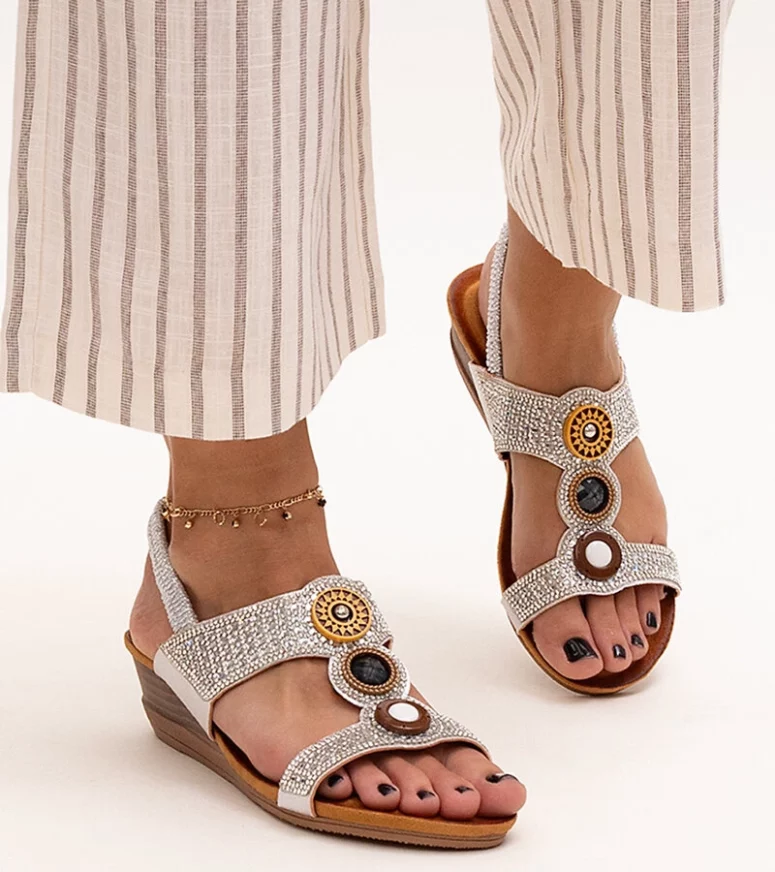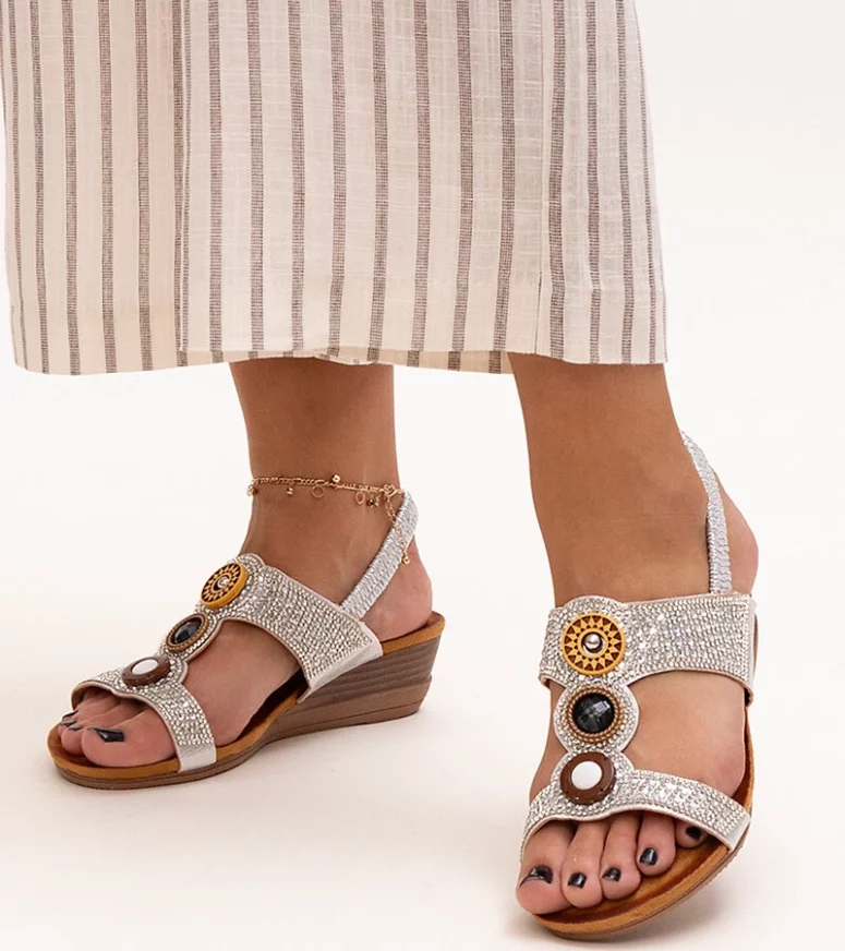 Błyszczące sandały na niskiej koturnie Azeeza to innowacyjne obuwie idealne na gorące letnie dni. Wykonane z wysokiej jakości materiałów, są bardzo wygodne i łatwe do wsunięcia. Ozdobione cyrkoniami dodają im wyjątkowego blasku, co sprawia, że są niezwykle efektowne. Koturna nadaje im modny wygląd, który jest teraz na czasie. Te sandały będą doskonałym uzupełnieniem letniej garderoby dla kobiet ceniących sobie oryginalny styl i komfort noszenia.