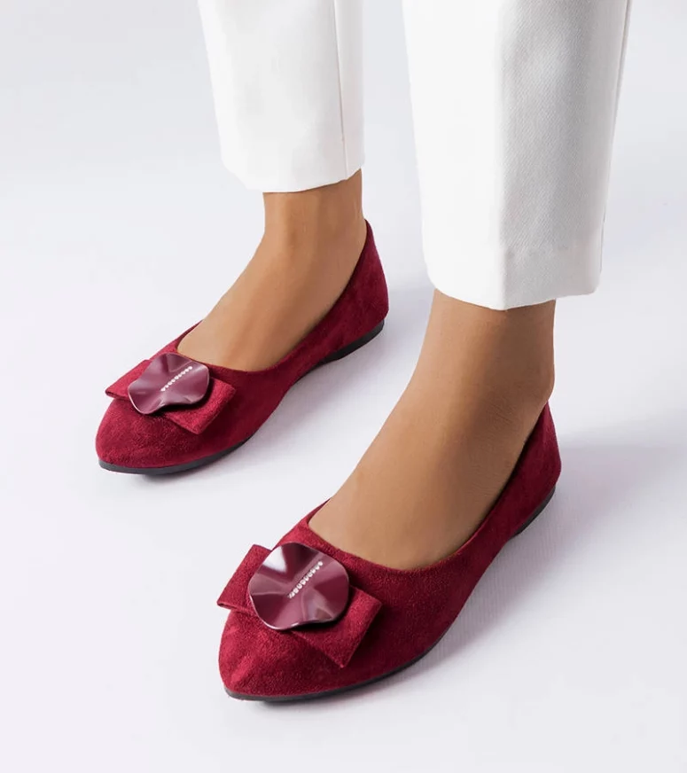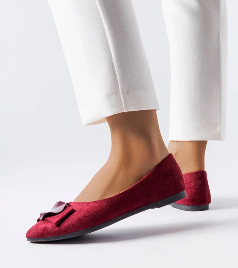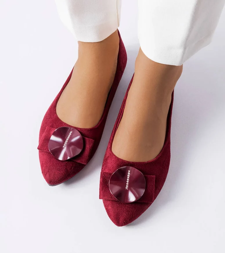 Balerinki Rémy wykonana ze skóry ekologicznej zamszowej. Osadzone na płaskiej podeszwie. Wsuwane, ze stylowym noskiem w szpic. Z przodu zdobione cyrkoniami na kółeczku w dopasowanym kolorze. Balerinki Rémy sprawdzą się dla fashionistek, które cenią sobie klasyczny look w minimalistycznym stylu. Numeracja zaniżona, sugerujemy wybrać o rozmiar większe.