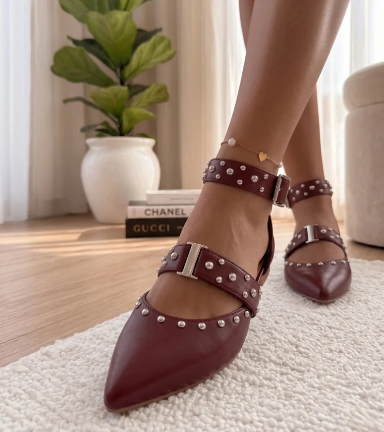 Bordowe Balerinki Zdobione Dżetami Clarisse