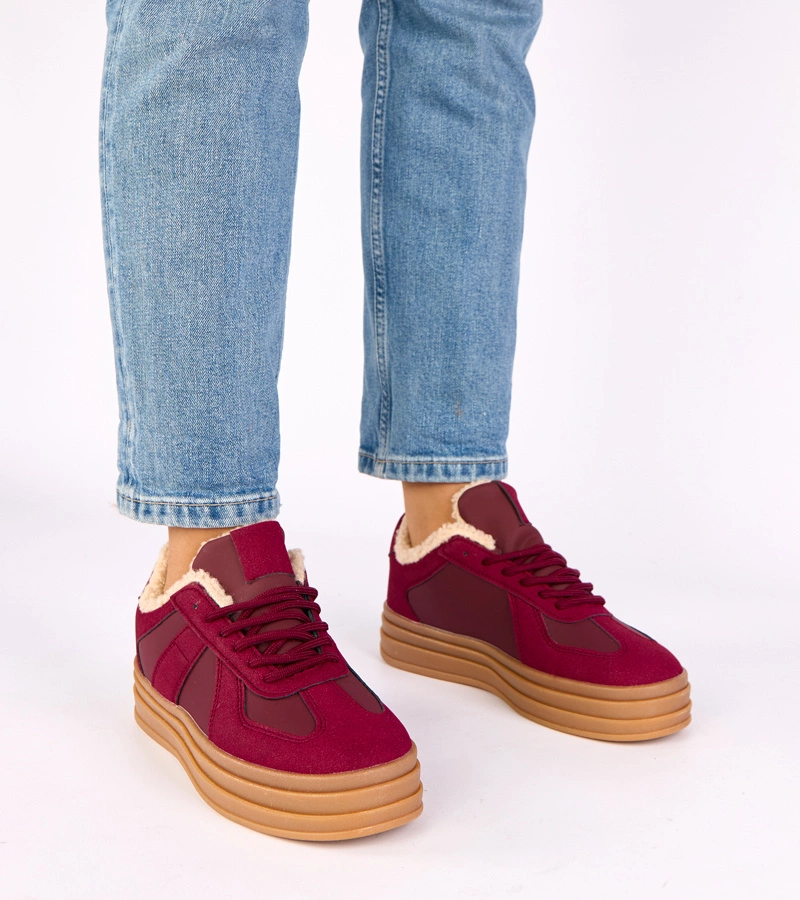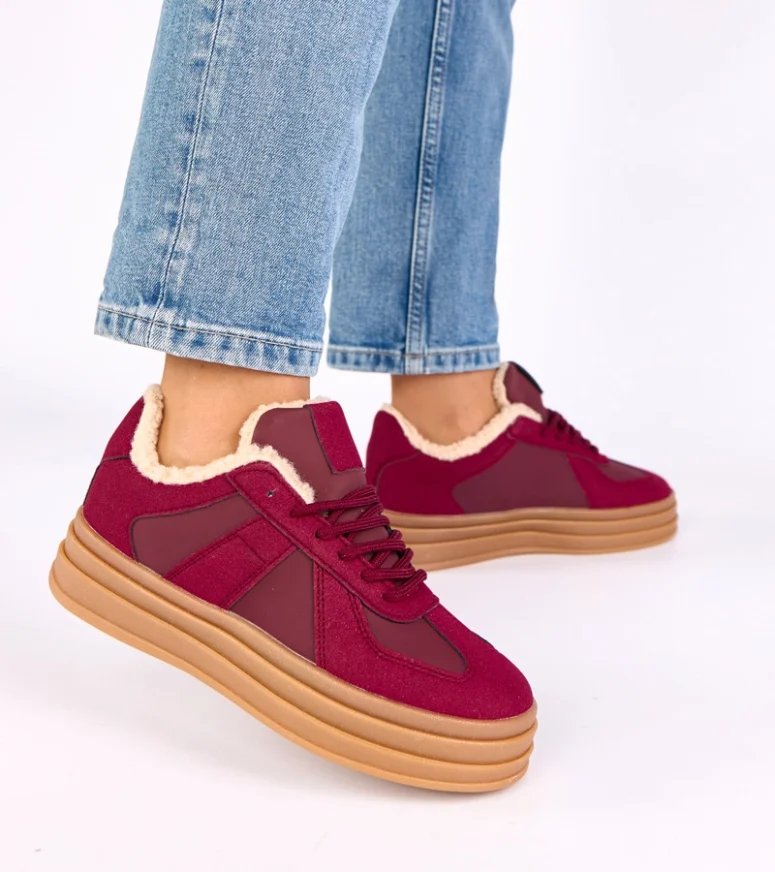 Bordowe sneakersy ocieplane futerkiem Kelsi marki Gemre to idealny wybór dla osób, które cenią sobie wygodę, ciepło i modny wygląd w jednym. Te stylowe sneakersy zostały zaprojektowane z myślą o chłodniejszych dniach, dlatego wyróżniają się przyjemnym w dotyku, miękkim ociepleniem. Wewnętrzne futerko zapewnia komfort termiczny, chroniąc stopy przed zimnem i pozwalając cieszyć się ulubionymi stylizacjami przez całą jesień i zimę.