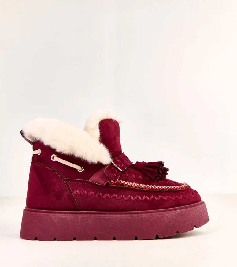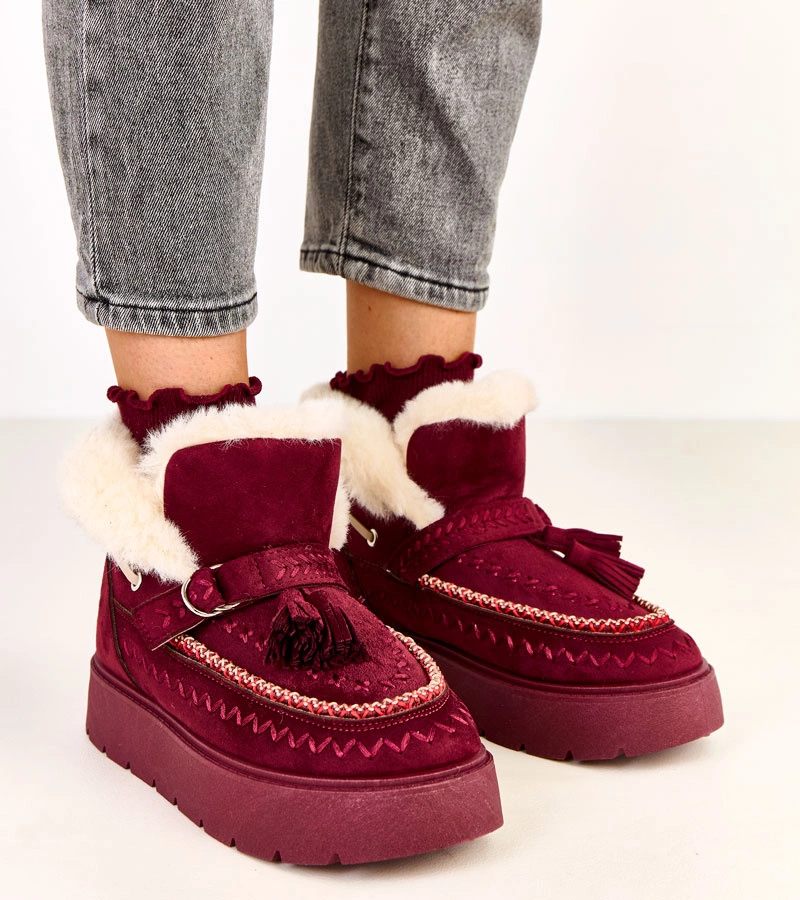 Odkryj wyjątkowe śniegowce damskie, które zrewolucjonizują Twoją zimową garderobę. Bordowe śniegowce na platformie z frędzlami Maurisa to połączenie nowoczesnego stylu i funkcjonalności. Idealne na chłodne dni, te buty zapewniają nie tylko ciepło, ale także niezrównany komfort.