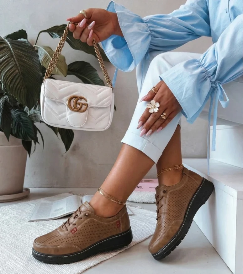Brązowe Ażurowe Wsuwane Półbuty Solenne