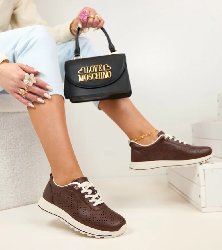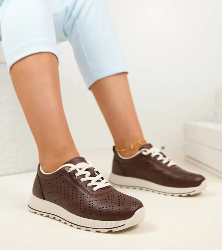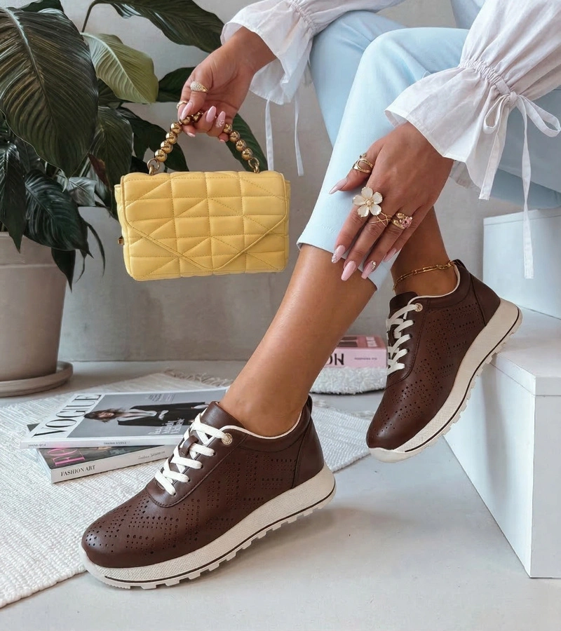Brązowe Ażurowe Wsuwane Sneakersy SIone