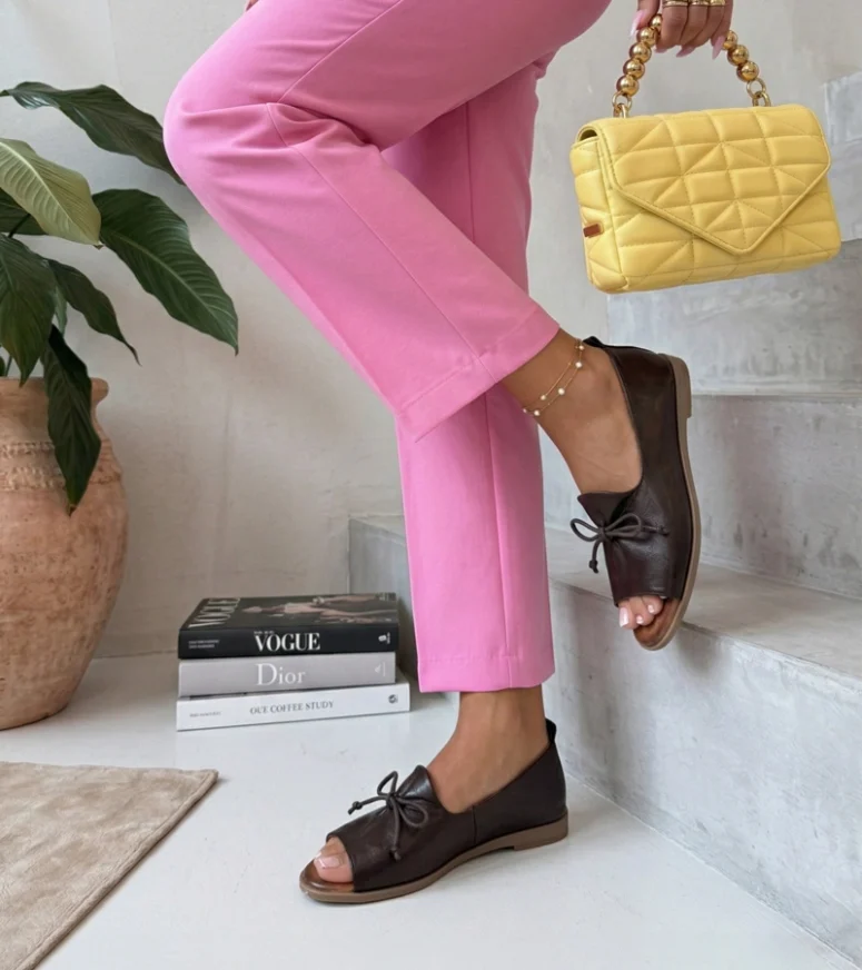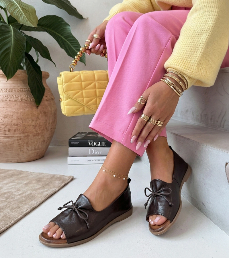 Brązowe Baleriny Skórzane Z Odkrytym Noskiem Cambell