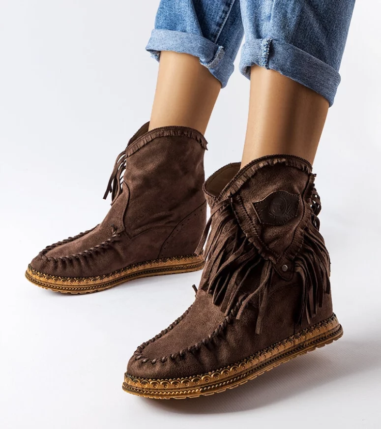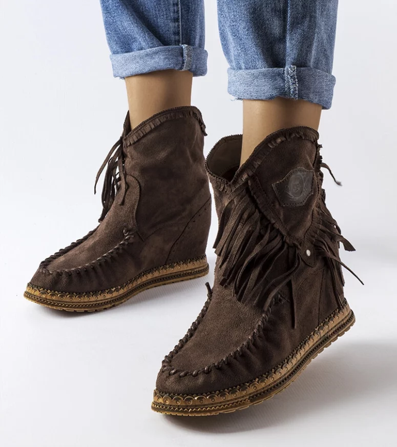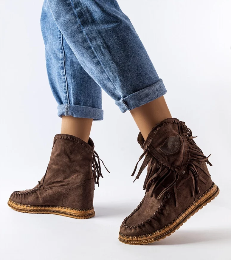 Brązowe botki na koturnie Giudice