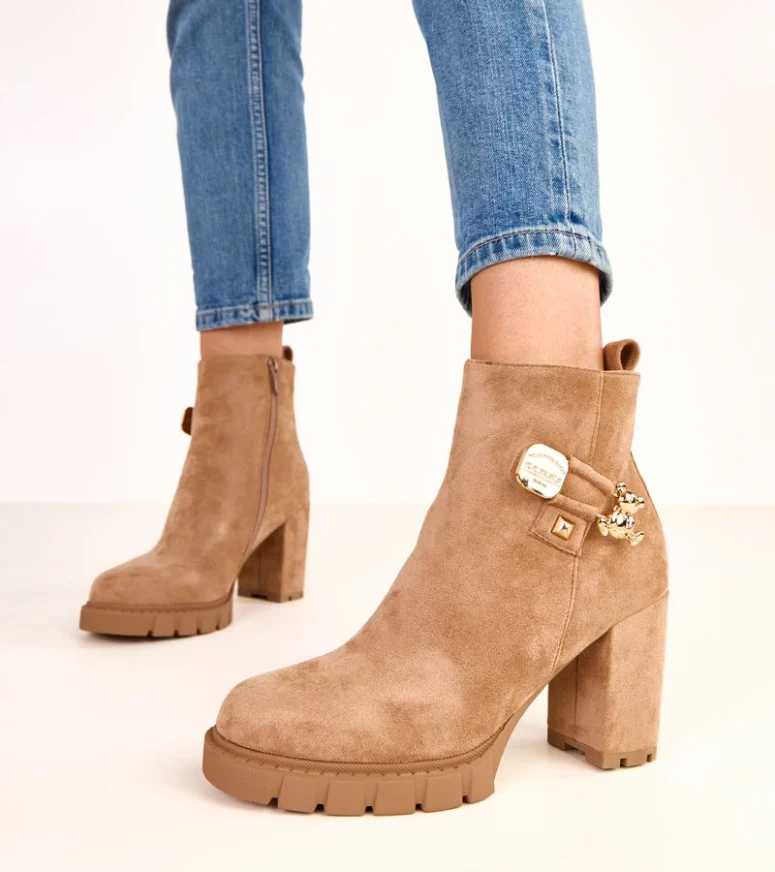 Jeśli szukasz obuwia, które połączy kobiecą elegancję, wygodę oraz nietuzinkowy design, brązowe botki na słupku zdobione złotym misiem Naste będą strzałem w dziesiątkę. Postaw na modne botki, które podkreślą Twój styl, dodadzą Ci pewności siebie i sprawią, że każda stylizacja nabierze wyjątkowego charakteru.