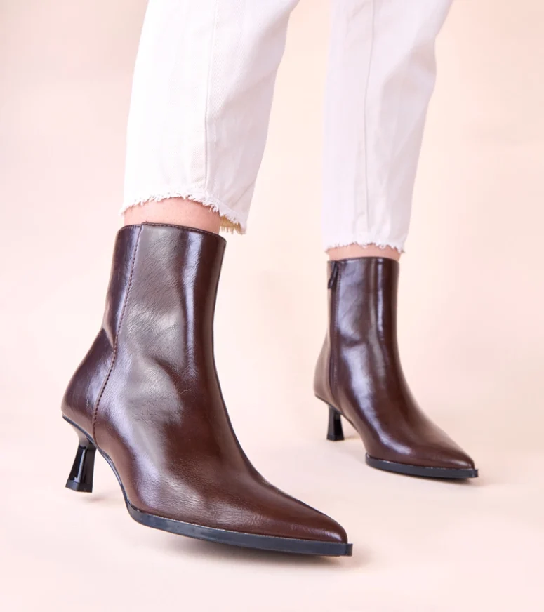 Wykonane z wysokiej jakości materiałów, brązowe botki Mordi zapewniają trwałość oraz wygodę noszenia. Ich uniwersalny kolor sprawia, że łatwo dopasujesz je do różnych stylizacji, zarówno casualowych, jak i bardziej eleganckich. Botki typu kaczuszka to idealny wybór na każdą porę roku, a ich ponadczasowy wygląd sprawi, że będą one nieodzownym elementem Twojej garderoby.