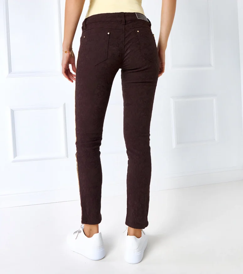 Wybierając spodnie Gemre, inwestujesz w modny design, komfort oraz jakość wykonania. Ten model świetnie sprawdzi się jako baza wielu stylizacji przez cały rok. Dodaj do swojej szafy brązowe wzorzyste spodnie z niskim stanem Lamel i ciesz się swobodą tworzenia wyjątkowych outfitów na każdą okazję.