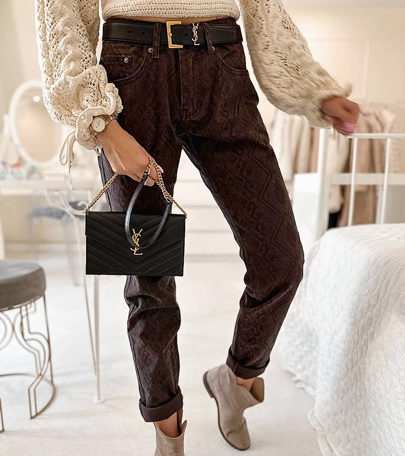 Spodnie Pelchat ze zwężaną nogawką. Straight ze szlufkami. Zapinane na suwak i guzik. Wsuwanie kieszenie na wysokości bioder. Pokryte modnym wzorem geometrycznym. Modne spodnie z dołączonym paskiem, które wystylizujesz na wiele sposobów! Pasują zarówno do marynarki, kurtki jeansowej, jaki ramoneski. Podczas wyboru prosimy sugerować się tabelą rozmiarów.