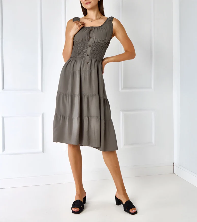 Zielona sukienka na ramiączkach Masaew to idealny wybór dla każdej kobiety, która chce wyglądać elegancko i modnie. Ta sztosowa kreacja jest absolutnym hitem tego sezonu i z pewnością przyciągnie spojrzenia innych. Dzięki swojemu trendowemu designowi i doskonałej jakości materiałów, ta sukienka sprawi, że poczujesz się wyjątkowo i pewnie siebie w każdej sytuacji. Nie wahaj się więc dłużej i postaw na ten niezwykły element garderoby!