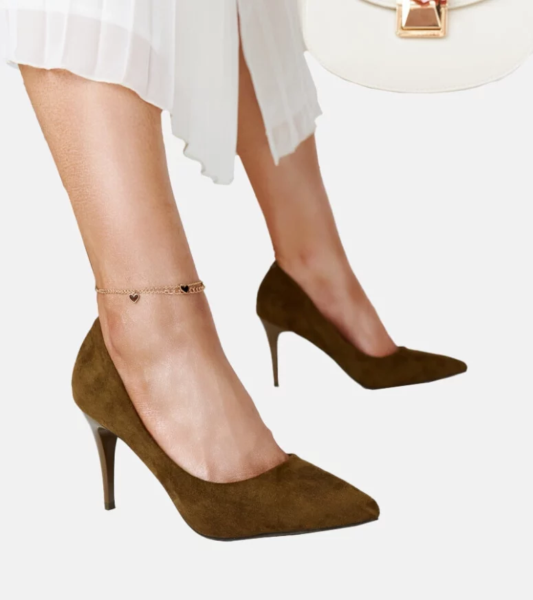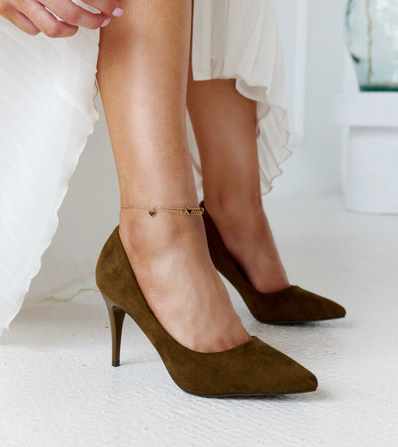 Ciemnozielone szpilki ze skórzaną wkładką Paume to stylowe obuwie wykonane z tworzywa sztucznego. Mają szpicowaty nosek, co nadaje im innowacyjny wygląd. Krój tych szpilek jest elegancki i kobiecy, a dzięki wsuwanej konstrukcji są bardzo wygodne w noszeniu. Idealnie sprawdzą się na wieczorne wyjścia czy specjalne okazje, dodając szyku i klasy każdej stylizacji.