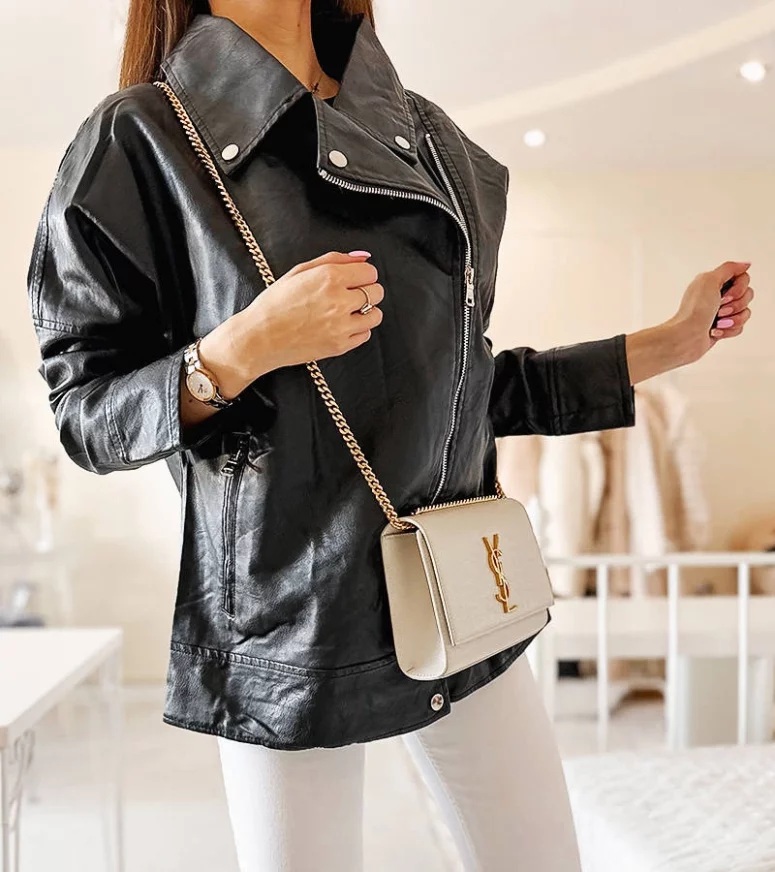 Czarna kurtka typu ramoneska eko-skóra Quennel