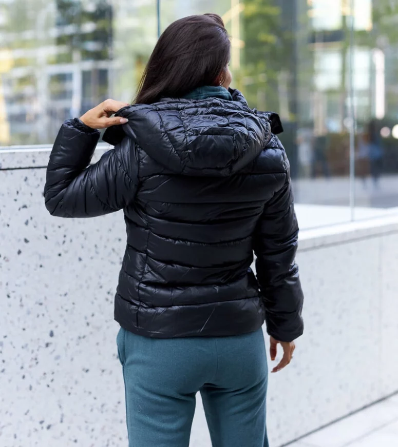 Kurtka ta posiada praktyczny zamek błyskawiczny, który umożliwia szybkie i łatwe zakładanie oraz zdejmowanie. Wystarczy jeden ruch, aby stworzyć elegancką stylizację lub dodać odrobinę szyku do codziennego outfitu. Niezwykłe połyskujące wykończenie nadaje tej kurtce unikalności i sprawia, że ​​stanowi ona świetne uzupełnienie zarówno dla casualowych, jak i bardziej formalnych looków. Czarna połyskująca kurtka Berta to również idealna propozycja dla miłośniczek modernistycznej estetyki. Jej minimalistyczny design podkreśla nowoczesność i ponadczasowość, co sprawia, że ​​jest ona idealna zarówno na co dzień, jak i na specjalne okazje. To wyjątkowy element garderoby, który dodaje charakteru i stylu każdej kobiecie. Nie tylko piękna i stylowa, ta kurtka jest również funkcjonalna. Wykonana z wysokiej jakości materiałów, zapewnia ochronę przed wiatrem i deszczem, dzięki czemu można nosić ją przez cały rok. Dodatkowo, posiada praktyczne kieszenie, które umożliwiają przechowywanie drobnych przedmiotów. Czarna połyskująca kurtka Berta to połączenie klasyki, wygody i nowoczesności. Jest to doskonały wybór dla kobiet, które cenią sobie chic i unikalny styl oraz chcą czuć się komfortowo i modnie bez względu na okazję. Niezwykle wszechstronna i trwała, ta kurtka stanie się nieodłącznym elementem garderoby każdej modowej kobiety.