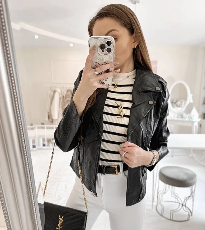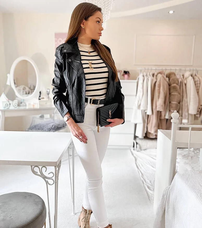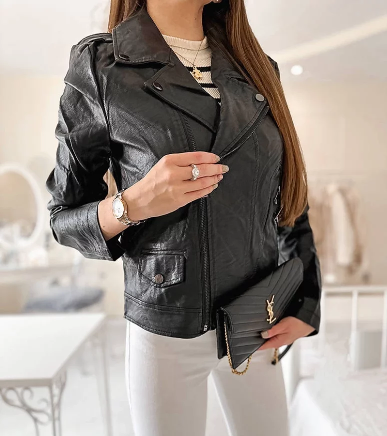 Kurtka Tricia z długim rękawem oraz ozdobnymi przeszyciami. Zasuwana na zamek błyskawiczny. O fasonie ramoneski. Dodatkowo na wysokości talii boczne kieszenie zasuwane na zamek. Casualowa ramoneska będzie świetnym dodatkiem do codziennych outfitów!