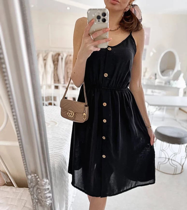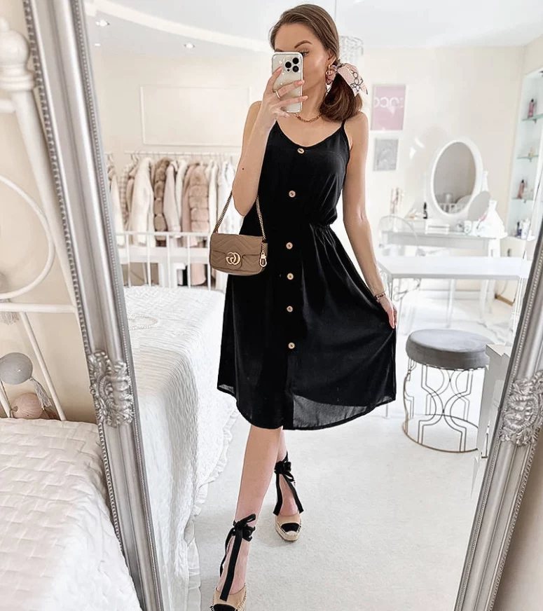 Czarna sukienka na ramiączkach Aubin