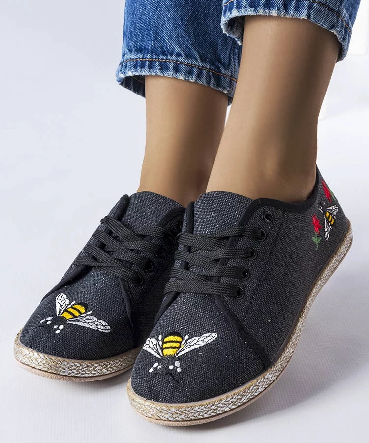 Espadryle Amiral stanowią doskonałą bazę dla letnich stylizacji. Cholewka jest wykonana z wysokiej jakości tkaniny. Fason w typie tenisówek zapewnia im oryginalny wygląd. Delikatnie błyszczące drobinki i srebrna obwódka wokół podeszwy wygląda obłędnie. Numeracja zaniżona, sugerujemy wybrać rozmiar większe.