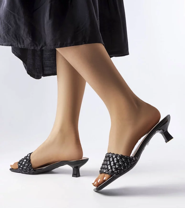 Klapki Burbank na niskiejm stabilnej szpilce, z otwartym, kwadratowym noskiem. Wsuwane, z szerokim paskiem tworzącym plecionkę. Wykonane z ekoskóry. To najmodniejszy fason klapków w ostatnich sezonach, Twój outfit zyska wygląd w stylu fashion! Numeracja standardowa, sugerujemy kierować się swoim rozmiarem.