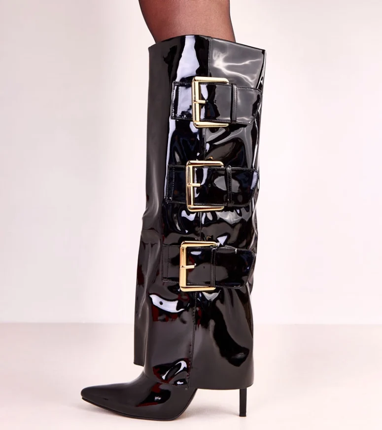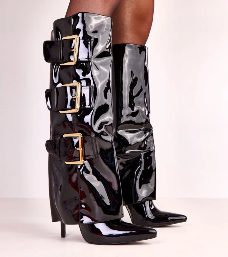 Odkryj wyjątkowe czarne kozaki lakierowane z wywiniętą cholewką Karela, które będą doskonałym uzupełnieniem Twojej garderoby. Te kozaki na szpilce to połączenie nowoczesnego stylu z elegancją, dzięki czemu idealnie sprawdzą się zarówno na co dzień, jak i na wyjątkowe okazje.