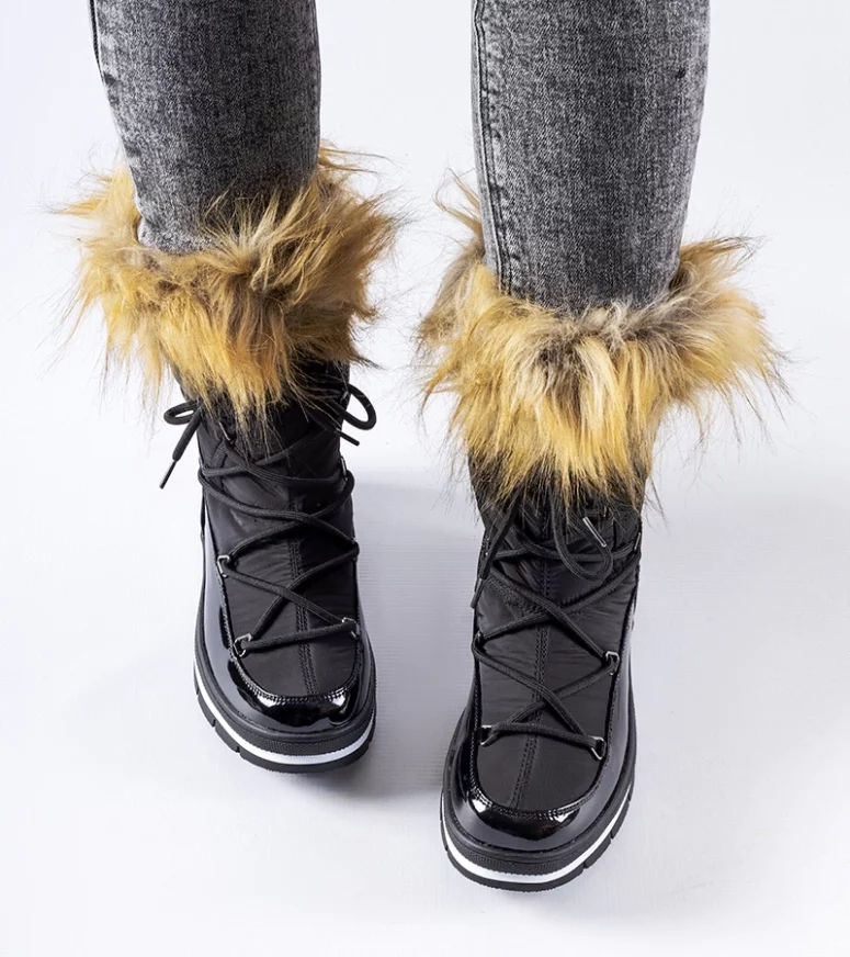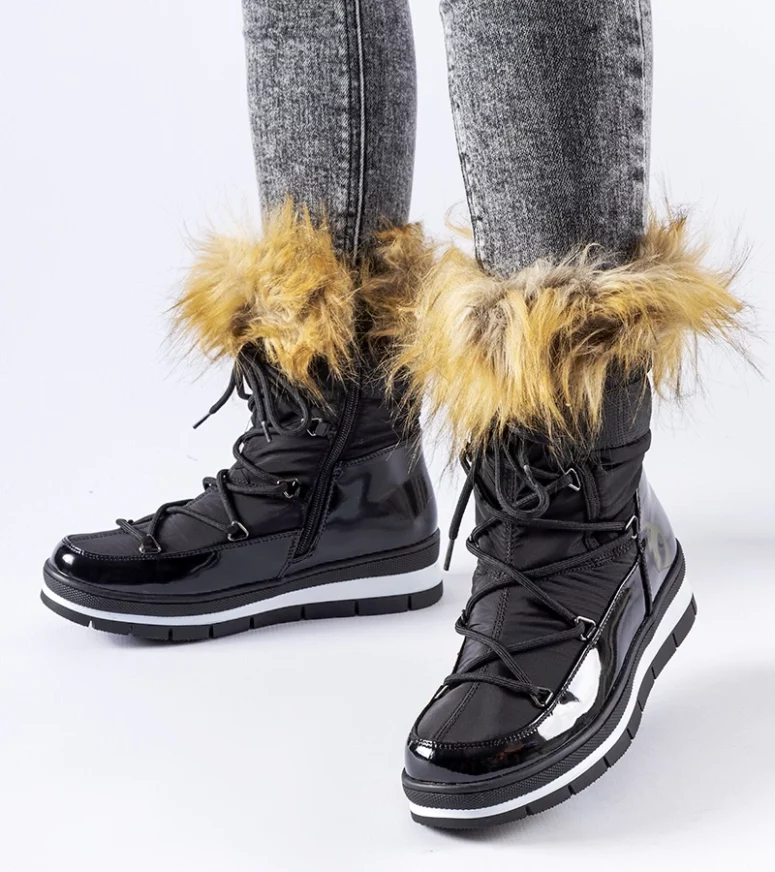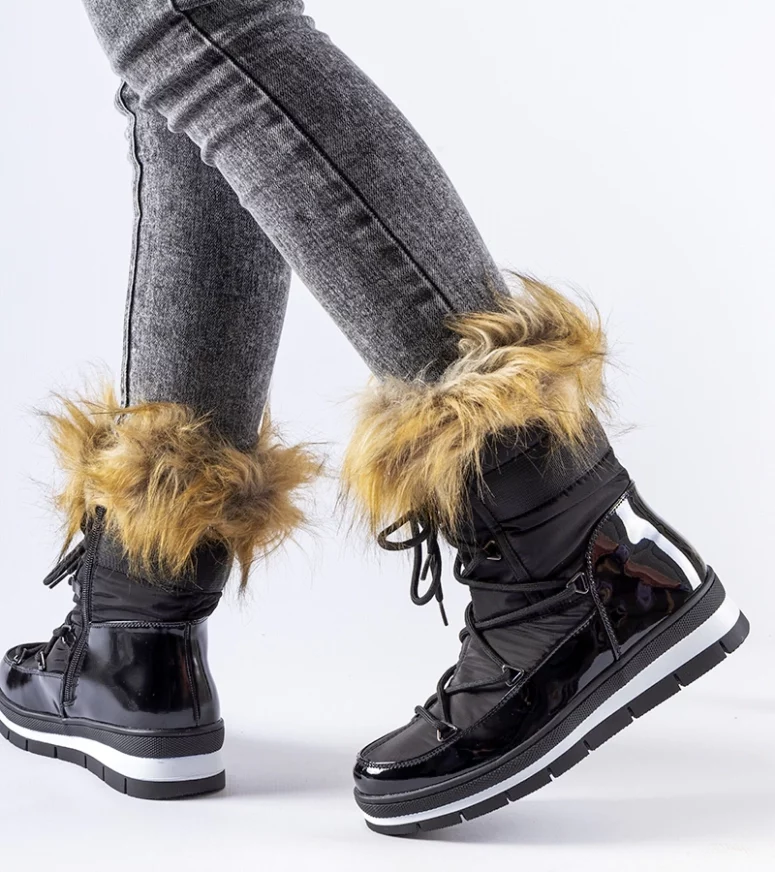 Buty są ocieplane, dzięki czemu zapewniają ciepło nawet w najzimniejsze dni. Mają wysoką, za kostkę konstrukcję, co dodatkowo chroni przed zimnem i zapewnia komfort podczas chodzenia. Na platformie, która dodaje im modnego charakteru, te śniegowce są również wygodne do noszenia przez dłuższy czas. Zamek błyskawiczny ułatwia zakładanie i zdejmowanie butów, a okrągły nosek nadaje im klasycznego wyglądu. Niezależnie od tego, czy idziesz na spacer po ulicy, czy udajesz się na wieczorne wyjście, te lakierowane śniegowce będą idealnym dopełnieniem Twojej zimowej garderoby. Nie tylko są one funkcjonalne i praktyczne, ale również przystępne cenowo, pozwalając na oszczędność bez rezygnacji z jakości. Czarne lakierowane śniegowce z futerkiem Bow to doskonały wybór dla tych, którzy poszukują stylowych, ciepłych i trwałych butów na zimę.