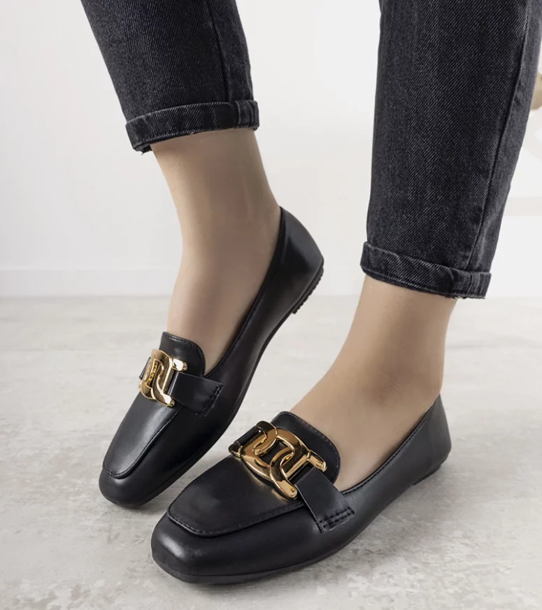Mokasyny Hashtag robią furorę. Obuwie jest wykonane ze skóry ekologicznej. Przód cholewki jest ozdobiony aplikacją na wzór łańcucha. Idealnie się sprawdzą jako dodatek do jesiennych i wiosennych stylizacji. Numeracja standardowa, prosimy kierować się swoim rozmiarem.