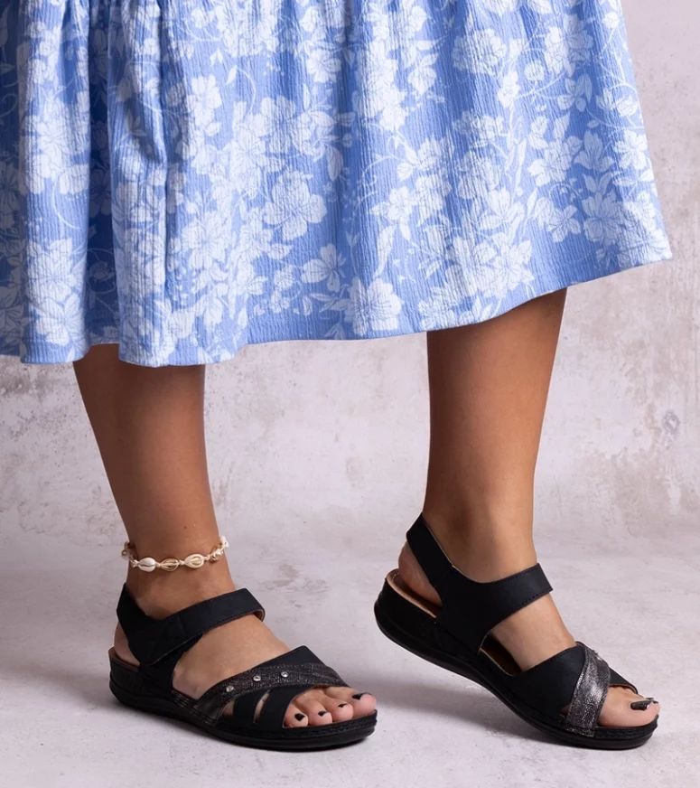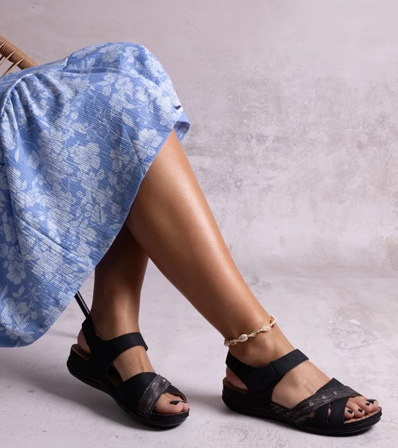Czarne sandały na platformie Nural to idealne połączenie postępowego designu z klasycznym stylem. Ich metaliczny akcent dodaje im nowoczesności, a średni obcas zapewnia wygodę i stabilność. Te modne sandały są doskonałe na letnie dni, wykonane z tworzywa sztucznego, co sprawia, że są lekkie i łatwe w utrzymaniu czystości. Co więcej, są one bardzo niedrogie, dzięki czemu każdy może sobie na nie pozwolić. Dzięki tym sandałom poczujesz się stylowo i komfortowo przez całe lato!