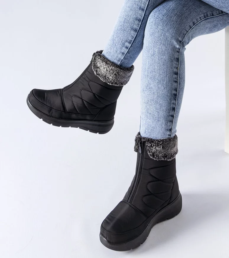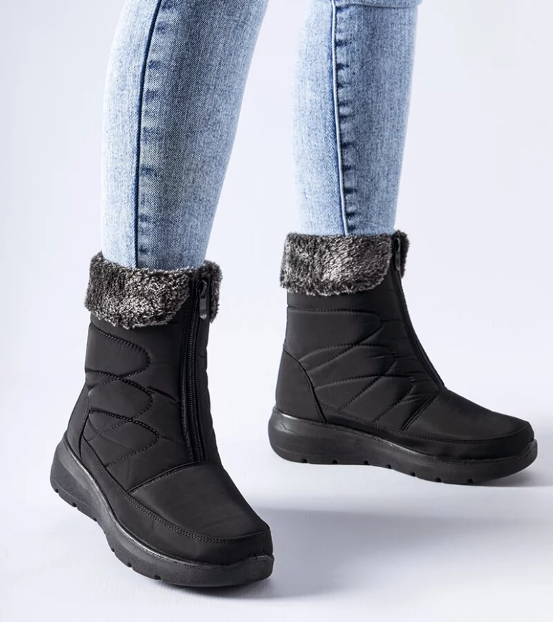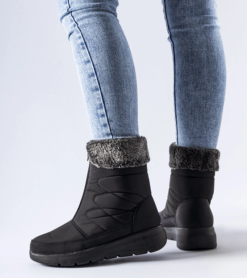 Czarne śniegowce na niskiej koturnie Brownton