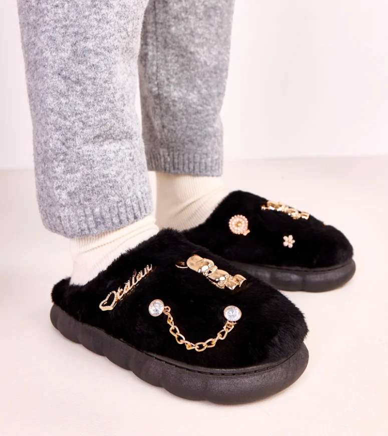 Czarne zabudowane kapcie z ozdobami Tracy to idealny wybór dla osób ceniących wygodę, styl i funkcjonalność na co dzień. Te eleganckie, czarne kapcie damskie zostały zaprojektowane tak, aby zapewnić maksymalny komfort podczas chodzenia po domu, a jednocześnie doskonale się prezentować. Zabudowana cholewka stabilnie trzyma stopę, chroniąc ją przed zimnem i zapewniając przyjemne uczucie ciepła o każdej porze roku.