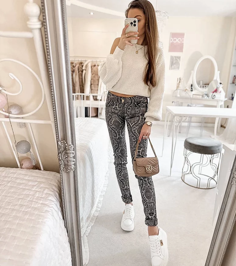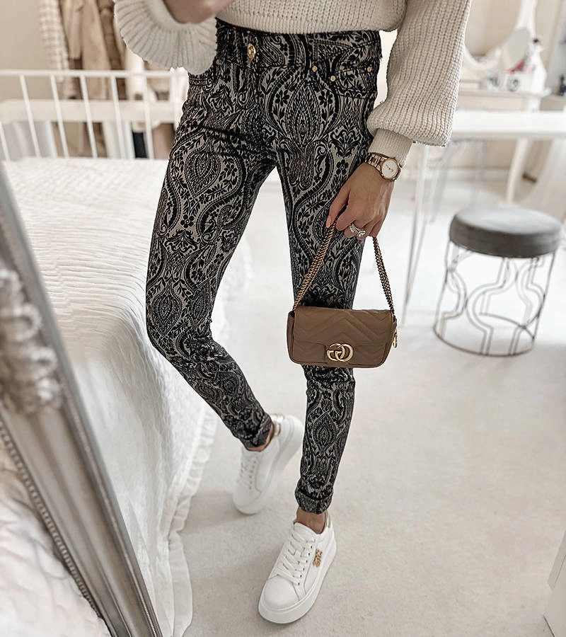 Czarno-grafitowe spodnie damskie Alia to rewolucyjna propozycja dla młodego pokolenia. Ich krój świetnie podkreśli kobiecą sylwetkę, a zapięcie na guzik zapewni doskonałe dopasowanie. Wykonane są z wysokiej jakości materiału, który zapewni wygodę i trwałość noszenia. Dodatkowo zdobione są pięknym wzorem kwiatowym, co dodaje im niepowtarzalnego charakteru. Te spodnie z pewnością przyciągną uwagę i pozwolą Ci wyróżnić się z tłumu!