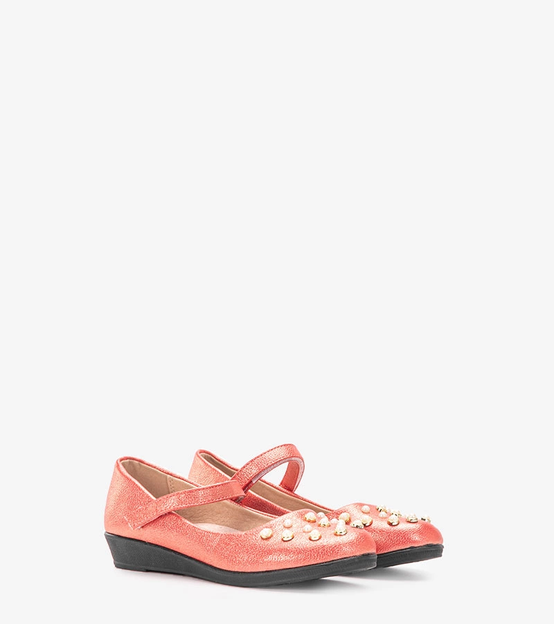 Stylowe perełki, umieszczone na cholewce balerin, nadają im elegancki charakter. To doskonały wybór do sukienek, spódniczek czy bardziej odświętnych stylizacji. Czerwone baleriny dla dziewczynki Gemre sprawdzą się także jako obuwie na ważne okazje – święta, wesela, komunie czy szkolne występy. Modny kolor i ponadczasowy fason sprawiają, że buty łatwo dopasować do wielu stylizacji, a mała właścicielka będzie czuła się w nich wyjątkowo.
