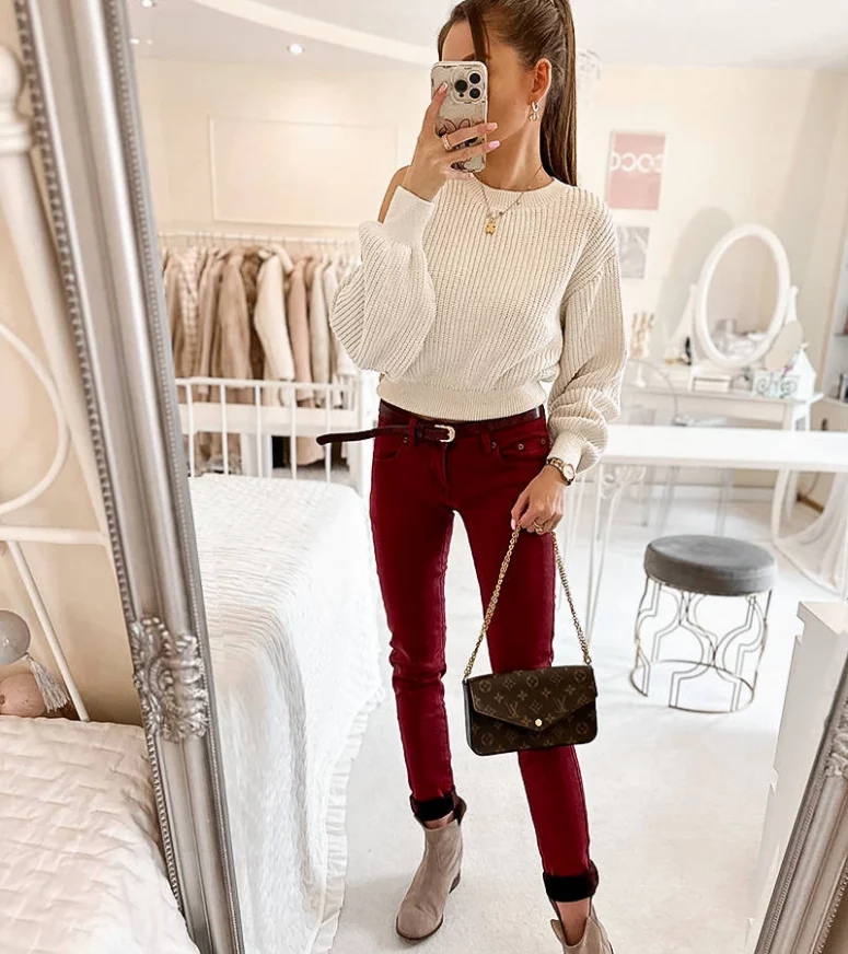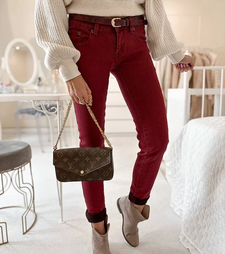 Czerwone elastyczne spodnie z paskiem Rocher to idealny wybór dla eleganckich kobiet, które cenią sobie modny styl i wyjątkowe rozwiązania. Dedykowane są one zwłaszcza dla młodego pokolenia, które poszukuje chic i nowoczesnych elementów garderoby. Spodnie zapinane na guzik mają nie tylko świetne właściwości estetyczne, ale również zapewniają komfort noszenia i swobodę ruchów. Ich czerwony kolor przyciąga uwagę i dodaje energii, a elastyczny materiał dopasowuje się do sylwetki, podkreślając kobiece kształty. Pasek w zestawie pozwala na jeszcze lepsze dopasowanie spodni do sylwetki. To doskonały wybór dla kobiet, które chcą poczuć się wyjątkowo i zrobić wrażenie na otoczeniu.