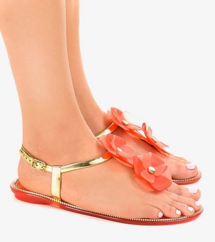 Czerwone klapki z kwiatkiem KG19P – Gemre | Sandały płaskie