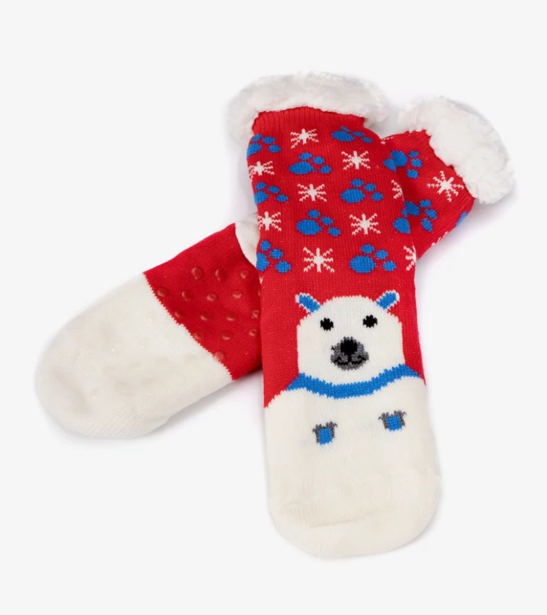 Skarpetki Lima będą idealnym towarzystwem na mroźne zimowe wieczory. Futerko jest bardzo ciepłe i przyjemne w dotyku. Spód ma antypoślizgowe elementy. Ich piękne świąteczne wzory sprawiają że będą one uroczym prezentem np. pod choinkę 😉 Model przeznaczony do użytku domowego.