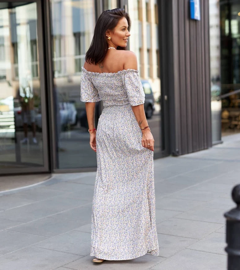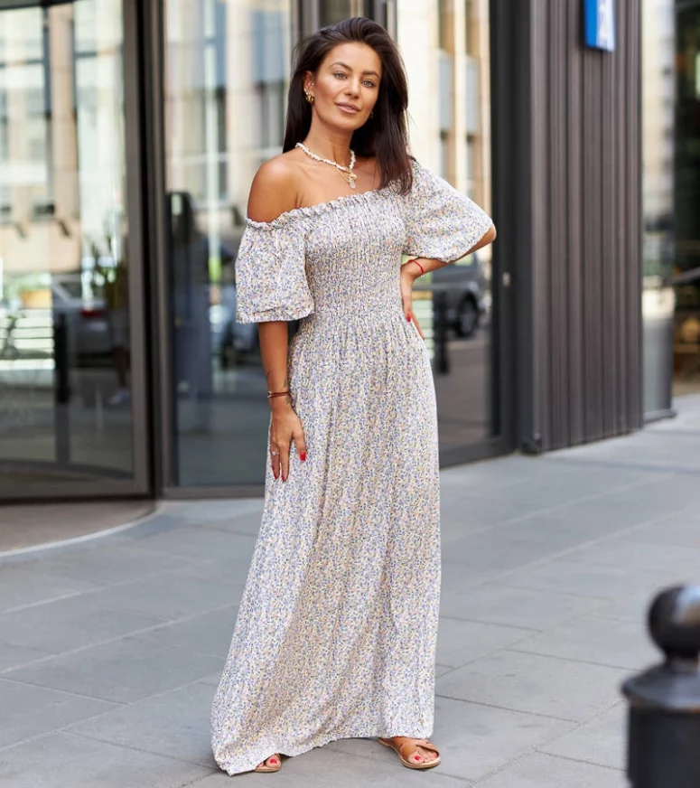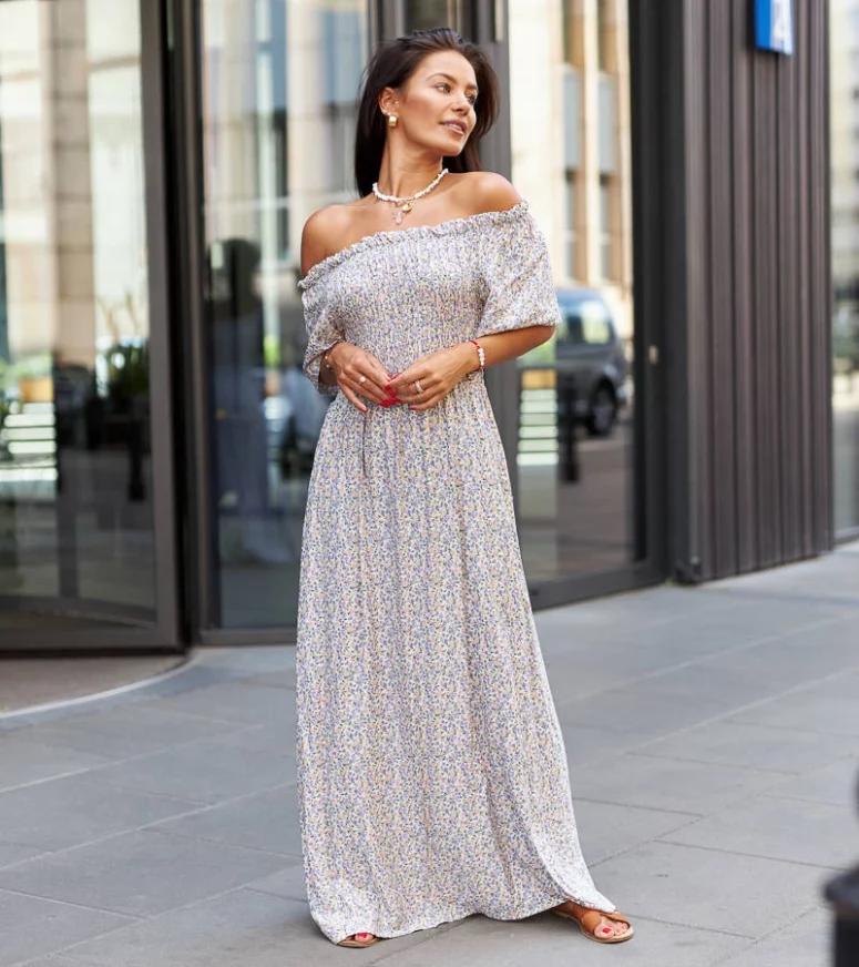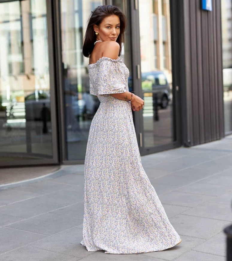 Sukienka została wykonana z wysokiej jakości materiałów, które gwarantują komfort noszenia przez cały dzień. Jej fioletowy kolor doskonale współgra z delikatnym wzorem kwiatowym, dodając zarówno romantyzmu, jak i odrobinę tajemniczości. Długa długość sukienki nadaje jej niepowtarzalny charakter, a także pozwala na tworzenie różnych stylizacji – możesz ją nosić na wieczorne przyjęcia, randki czy nawet na specjalne okazje. Dodatkowo, sukienka posiada dopasowany krój, który podkreśla kobiece kształty, podkreślając wspaniałą sylwetkę. Ta fioletowa sukienka maxi Ilario jest idealna dla kobiet, które chcą poczuć się pięknie i pewnie siebie. Jej unikalny wzór kwiatowy dodaje uroku i sprawia, że każda kobieta będzie czuła się szczególnie wyjątkowo. Niezależnie od okazji, ta sukienka z pewnością przyciągnie uwagę wszystkich dookoła.