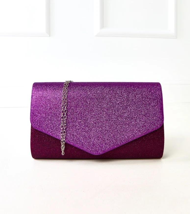 Fioletowa kopertówka Sepi obłędnie dopełni twoje stylizacje 😉 Torebka jest wykonana z wysokiej jakości materiałów w trosce o nasze zadowolenie. Błyszczący oraz brokatowy materiał wyglądają razem zjawiskowo! Srebrny łańcuszek prezentuję się niezwykle elegancko. Do torebki dołączony jest krótki pasek abyśmy mogły wygodnie chwycić ją w dłoń.