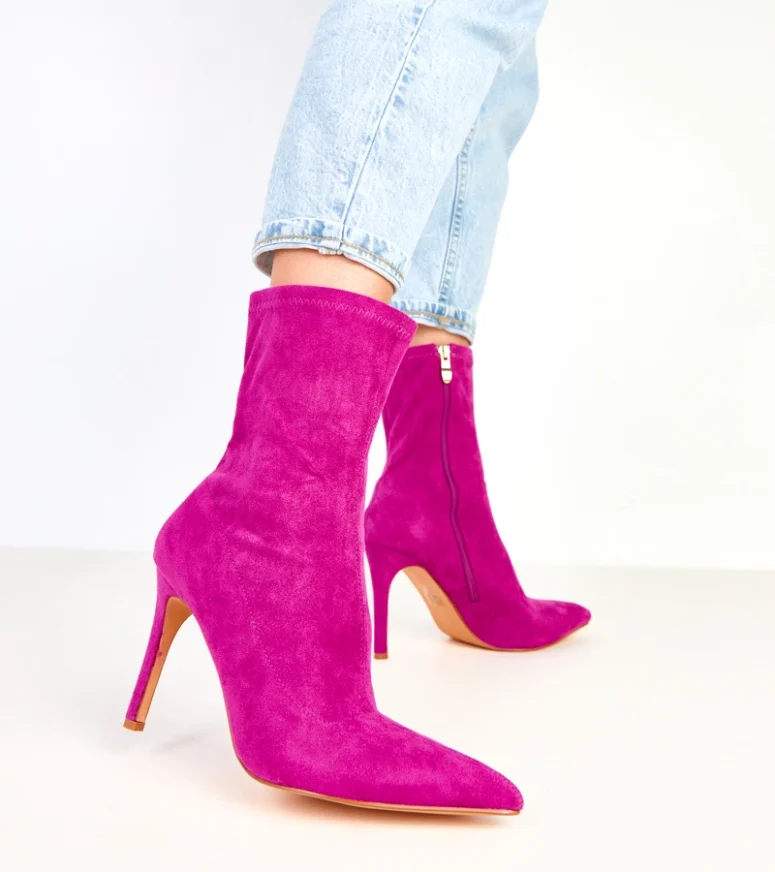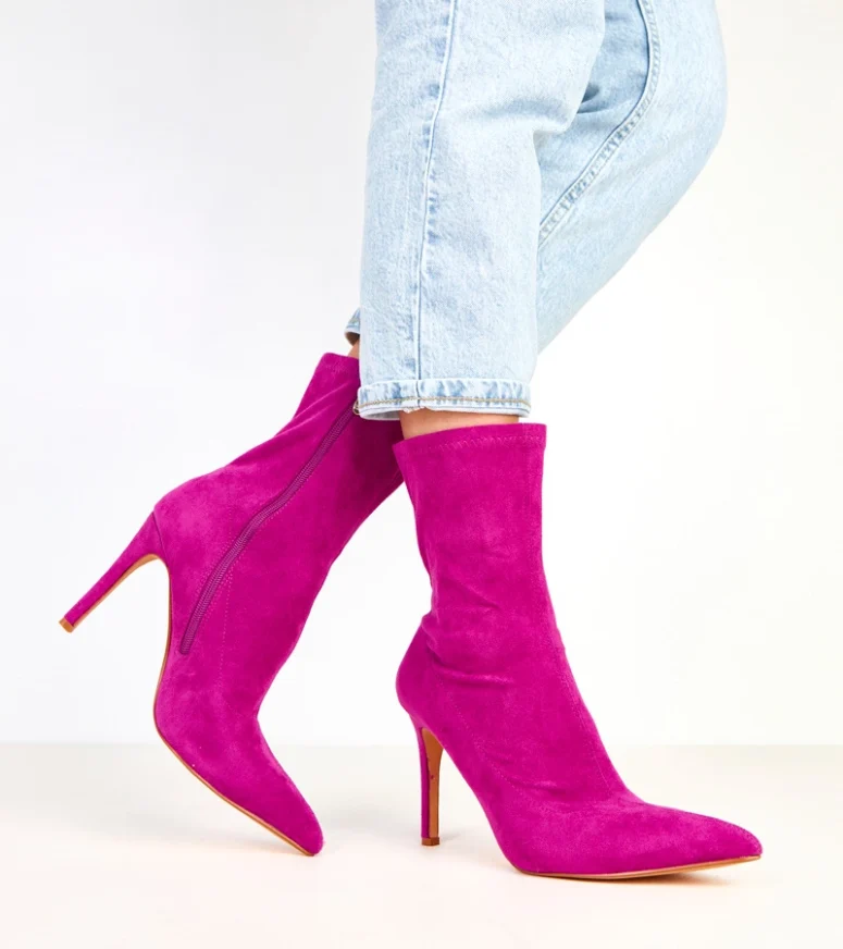 Jeśli szukasz obuwia, które pozwoli Ci wyróżnić się z tłumu, postaw na fioletowe botki zamszowe na szpilce Tennille. To propozycja dla kobiet, które lubią bawić się modą, ale jednocześnie oczekują klasy i wygody. Dodaj je do swojej kolekcji i twórz niepowtarzalne stylizacje na spotkania ze znajomymi, randki czy ważne wyjścia. Eleganckie botki damskie Gemre sprawią, że każdy krok będzie pewny, a Ty poczujesz się wyjątkowo w każdej sytuacji.