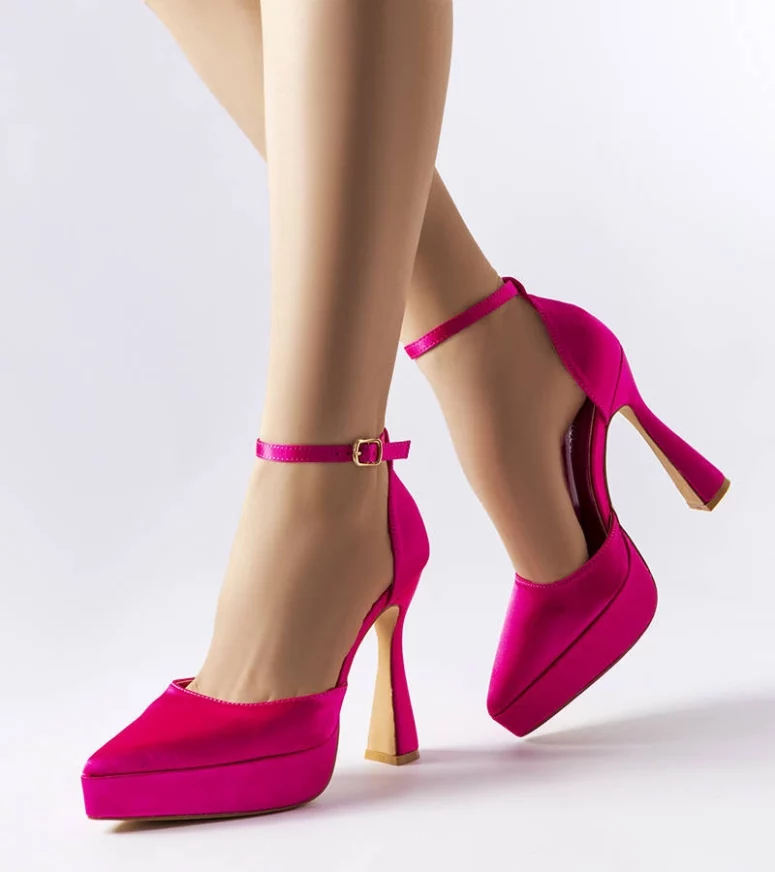 Czółenka Lowell na wysokim, powlekanym słupku i dodatkowej platformie. Szpiczaste, smukłe noski. Zapinane na cienki pasek z małą sprzączką przy kostce. Wykonane z tkaniny o satynowym wykończeniu. Całość w jednolitej kolorystyce. To model, który doskonale wydłuży i wysmukli nogi. Numeracja standardowa.