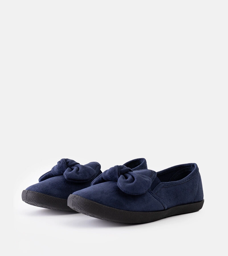Granatowe baleriny dziecięce z kokardą Yonca są idealnym wyborem na gorące dni dla małych fashionistek. Wykonane ze wsuwanej gumy, zapewniają wygodę i swobodę ruchu. Ich design charakteryzuje się okrągłym nosem i stylowymi detalami, które dodają im uroku. Te letnie, niskie baleriny będą doskonałym uzupełnieniem letniej garderoby każdej dziewczynki.