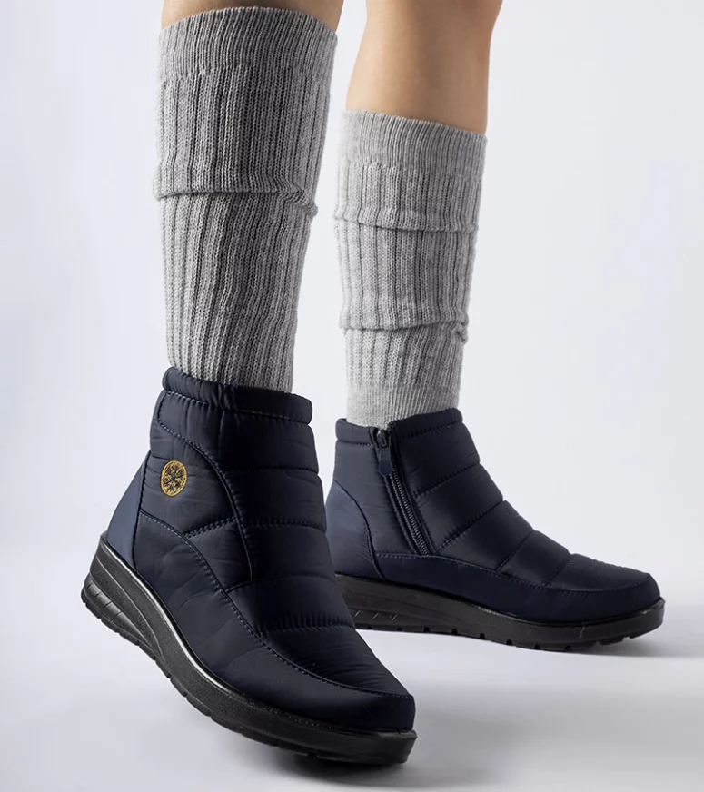 Śniegowce wykonane są z wysokiej jakości gumy, co gwarantuje ich trwałość i odporność na warunki atmosferyczne. Dodatkowo, posiadają one zamek, co ułatwia zakładanie i zdejmowanie butów. To niezwykle praktyczne rozwiązanie, szczególnie w trudnych warunkach zimowych. Dzięki ocieplającemu wnętrzu, te granatowe śniegowce są nie tylko stylowe, ale również ciepłe i komfortowe. Idealnie chronią przed zimnem, dzięki czemu można w nich spędzać długie godziny na świeżym powietrzu bez obaw o zmarznięte stopy. Ich wysokość za kostkę zapewnia także dodatkową ochronę przed zimnymi podmuchami wiatru. Granatowe śniegowce na niskiej koturnie Vittore to doskonały wybór dla osób, które cenią sobie modny wygląd, jednocześnie dbając o komfort i funkcjonalność. Są one nie tylko idealnym uzupełnieniem zimowej garderoby, ale również doskonale sprawdzą się podczas codziennych aktywności na świeżym powietrzu.