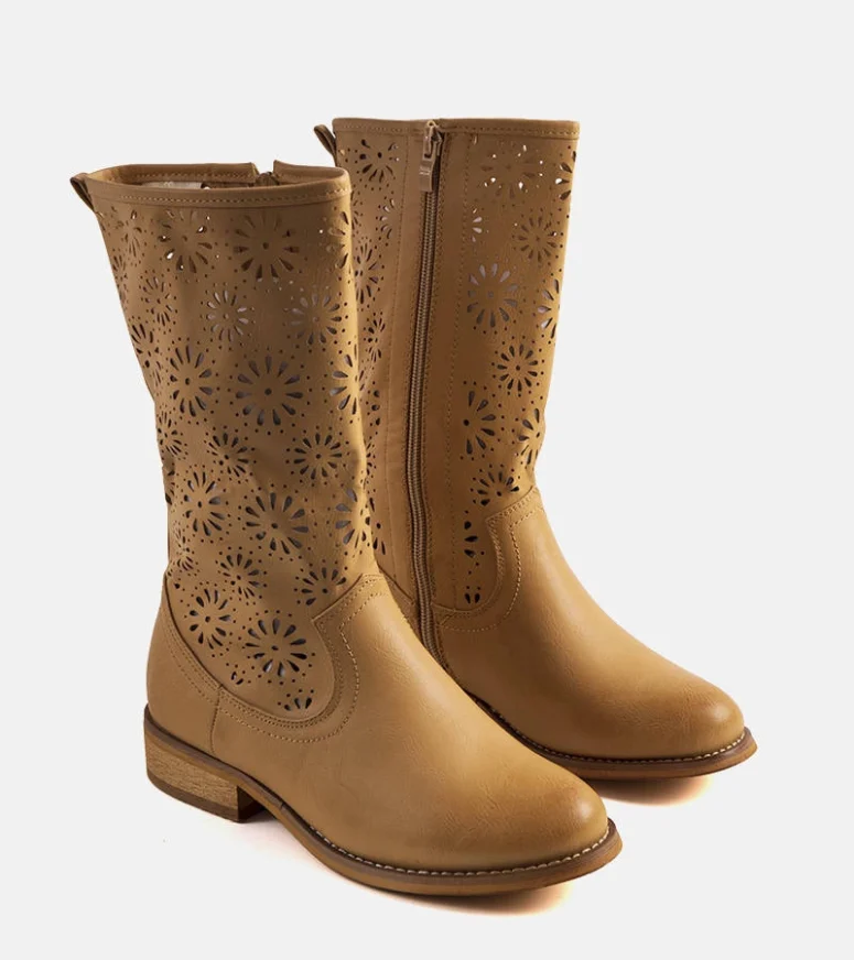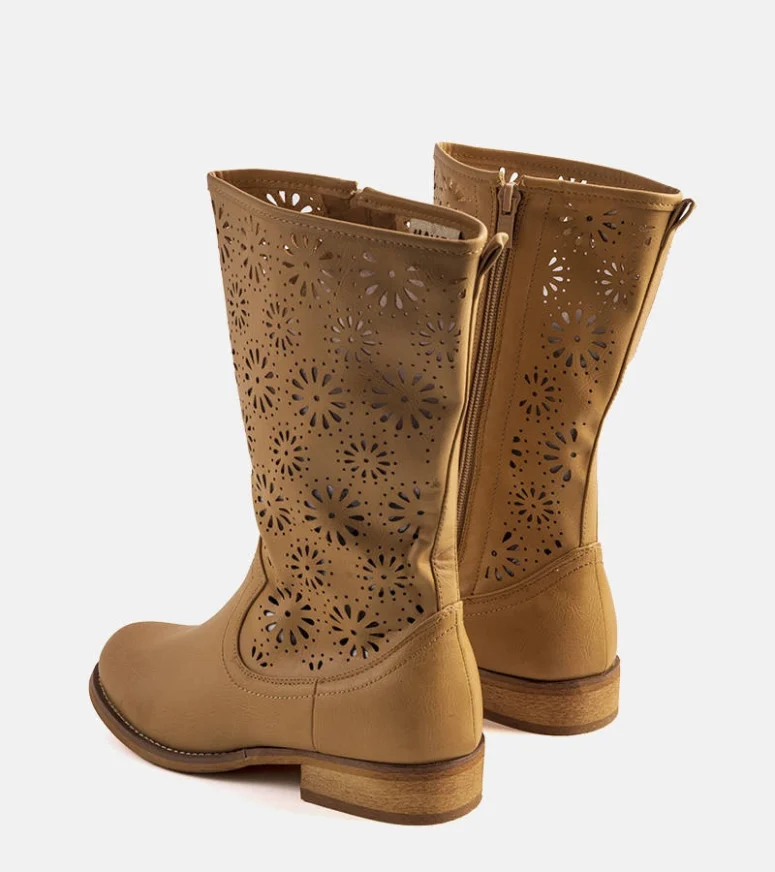 Jasnobrązowe ażurowe botki dziecięce Bitsis