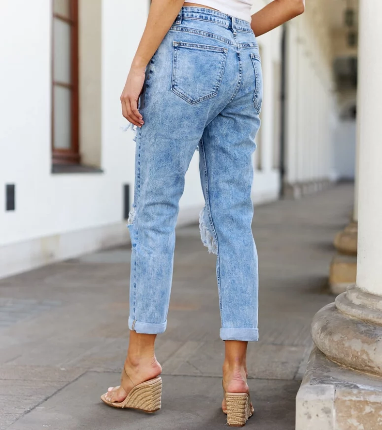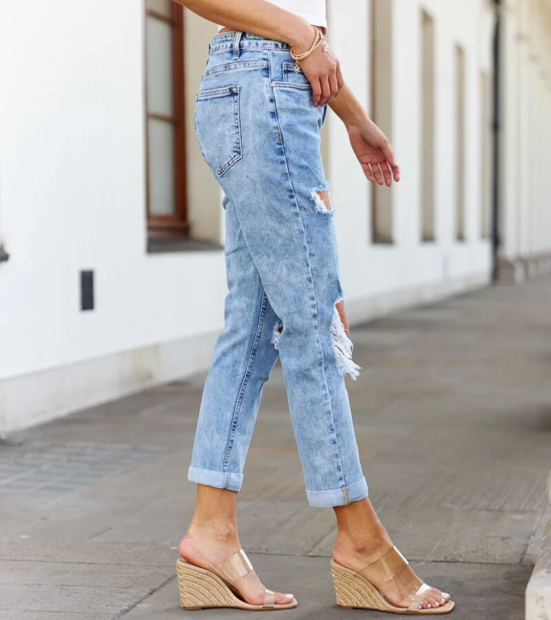 Jeansy mom fit Laganadi to must-have w każdej garderobie. Ich współczesny design z przetarciami nadaje im unikatowego charakteru, a na guzik dodaje im eleganckiego wykończenia. Doskonale sprawdzą się zarówno na co dzień, jak i na specjalne okazje, dodając stylizacji odrobinę rockowego pazura. Idealne połączenie wygody i trendowego looku!