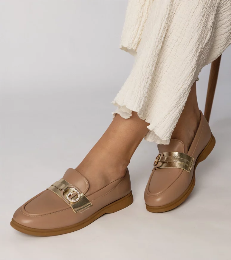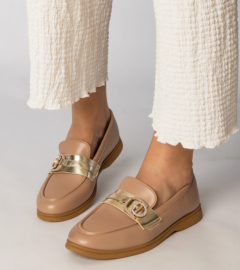 Wybierz kremowe mokasyny z ekoskóry z cyrkoniami Berita i ciesz się niepowtarzalnym stylem oraz komfortem każdego dnia. Dodaj je do swojej kolekcji obuwia i zrób wrażenie na innych!