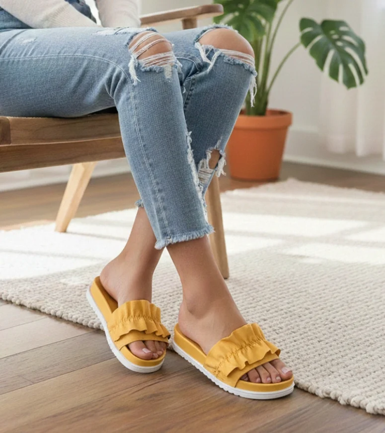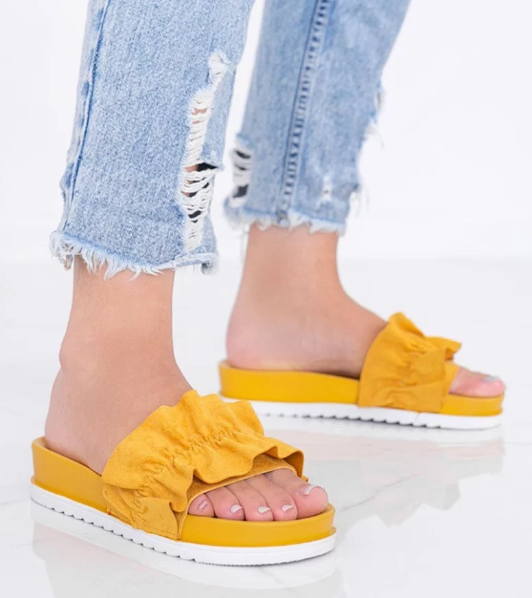Dodaj odrobinę stylu i elegancji do swojej letniej garderoby dzięki musztardowym klapkom z falbanką Samanta od renomowanej marki Gemre. Te wyjątkowe klapki to idealne połączenie modnego designu i komfortu, które sprawią, że poczujesz się wyjątkowo na każdej letniej imprezie czy spacerze po plaży.