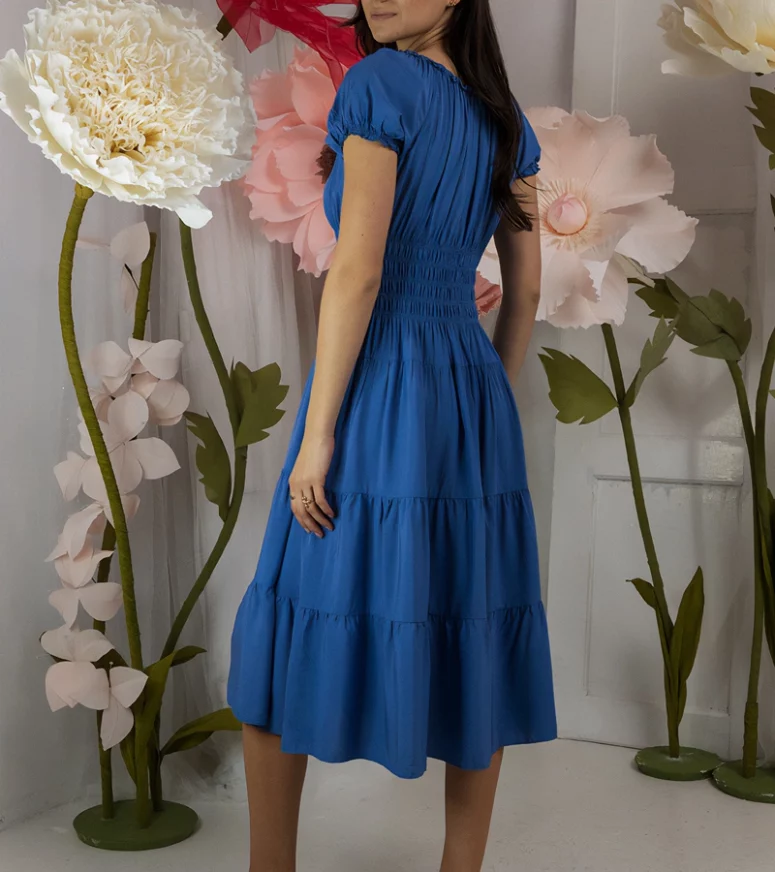 Ta niebieska sukienka midi z krótkim rękawem marki Marisla to absolutny must-have w każdej szafie! Jej nowoczesny design i klasyczny fason sprawiają, że jest idealna na czasie. Dzięki swojej uniwersalności możesz nosić ją zarówno na co dzień, jak i na specjalne okazje. Dodaj do niej modne dodatki i stwórz stylizację, która przyciągnie uwagę wszystkich wokół!