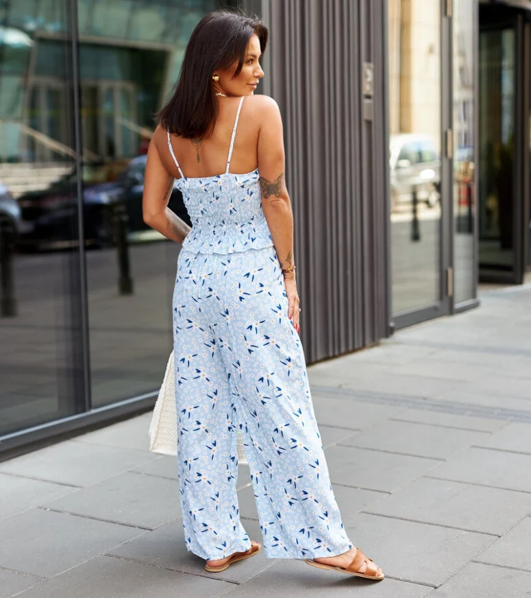 Ten niebieski komplet z topem na ramiączkach i spodniami Lilia to idealna propozycja dla kobiet, które szukają taniego, ale jednocześnie modnego stroju. Komplet jest zdobiony pięknym wzorem kwiatowym, który dodaje mu delikatności i kobiecości. Wzór ten jest również bardzo na czasie, co sprawia, że ten komplet jest doskonałym wyborem dla osób postępowych, które chcą być trendy.