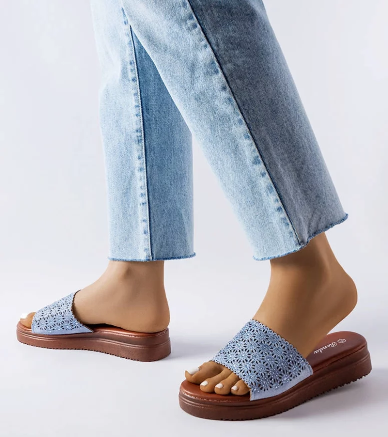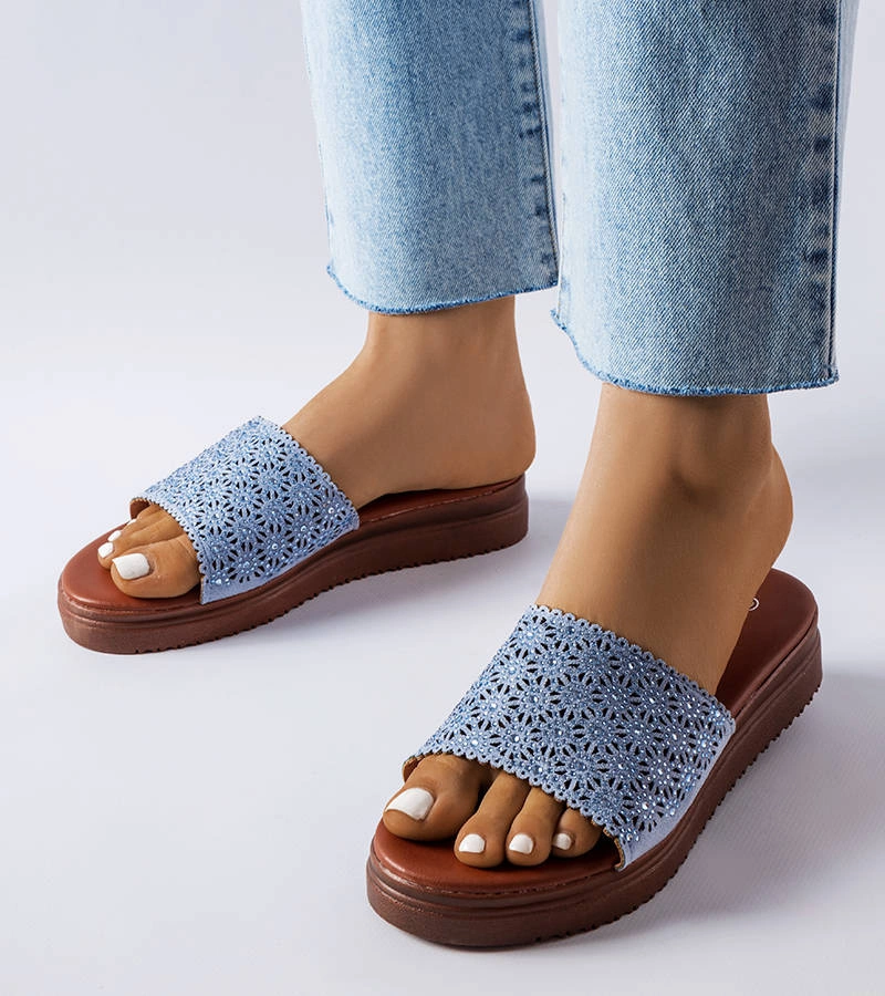 Niebieskie ażurowe klapki z cyrkoniami Irvine